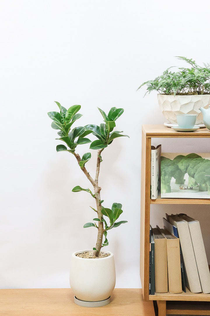 床置きタイプでテレビ台の横などのスペースで存在感を引き立てるサイズの観葉植物です。
