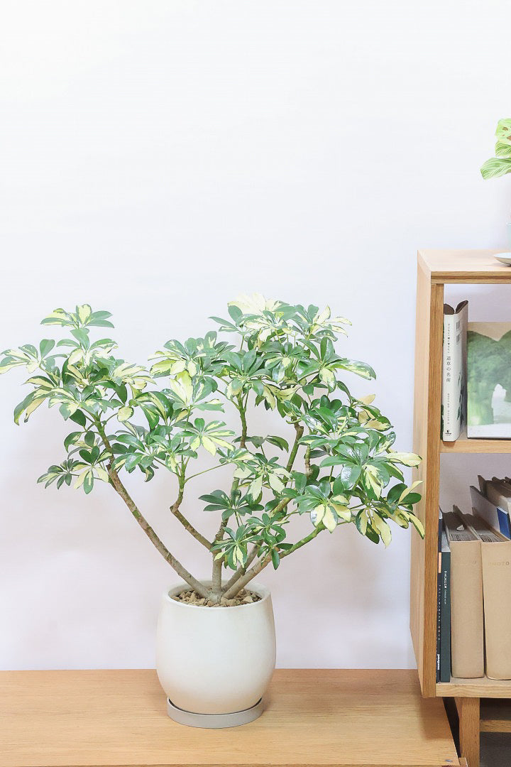 シェフレラはその育てやすさから人気の品種です。性質はとても健常で丈夫。個性的な樹形のものが多く、お部屋のメイングリーンになる観葉植物です。長い時間けて生長する楽しみな植物です。