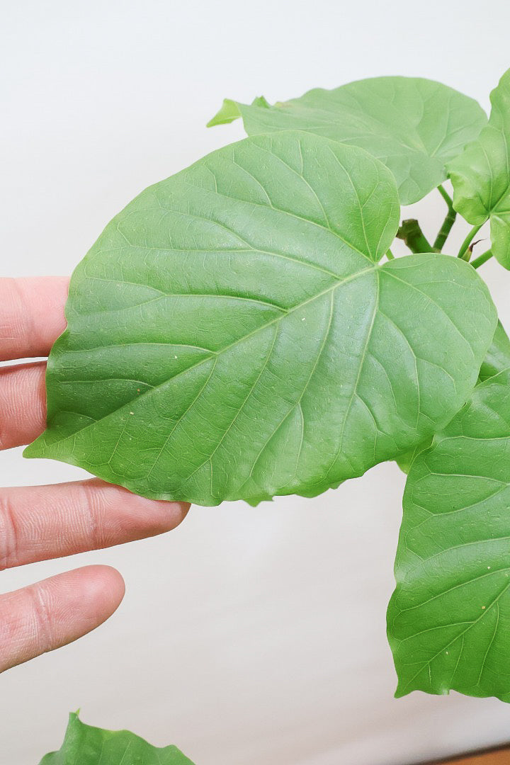 今回入荷のウンベラータは幹のカーブも美しいですし、葉のバランスもいい感じです!葉は当店でしっかりと養生しましたので、絶品です!葉の質感はとても繊細で優しい質感です。長い時間をかけて生長する植物ですので、お部屋のインテリアとしてぴったりの植物です。