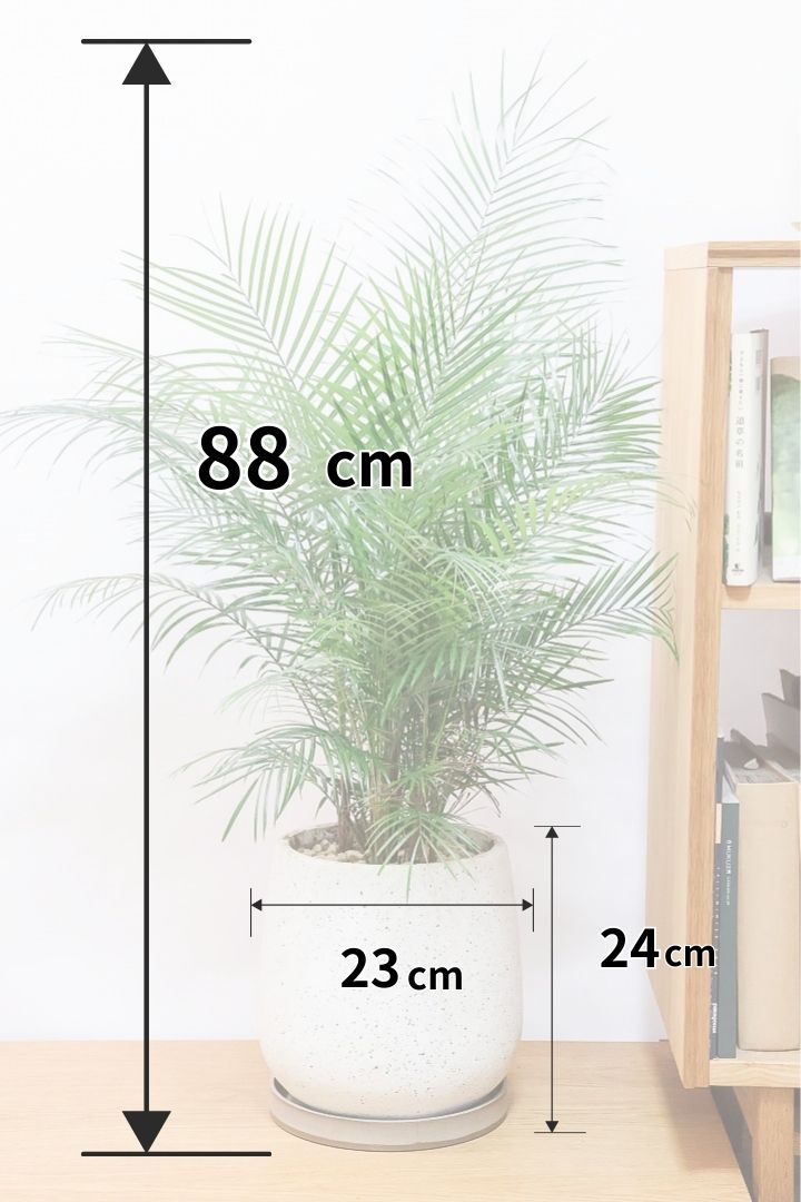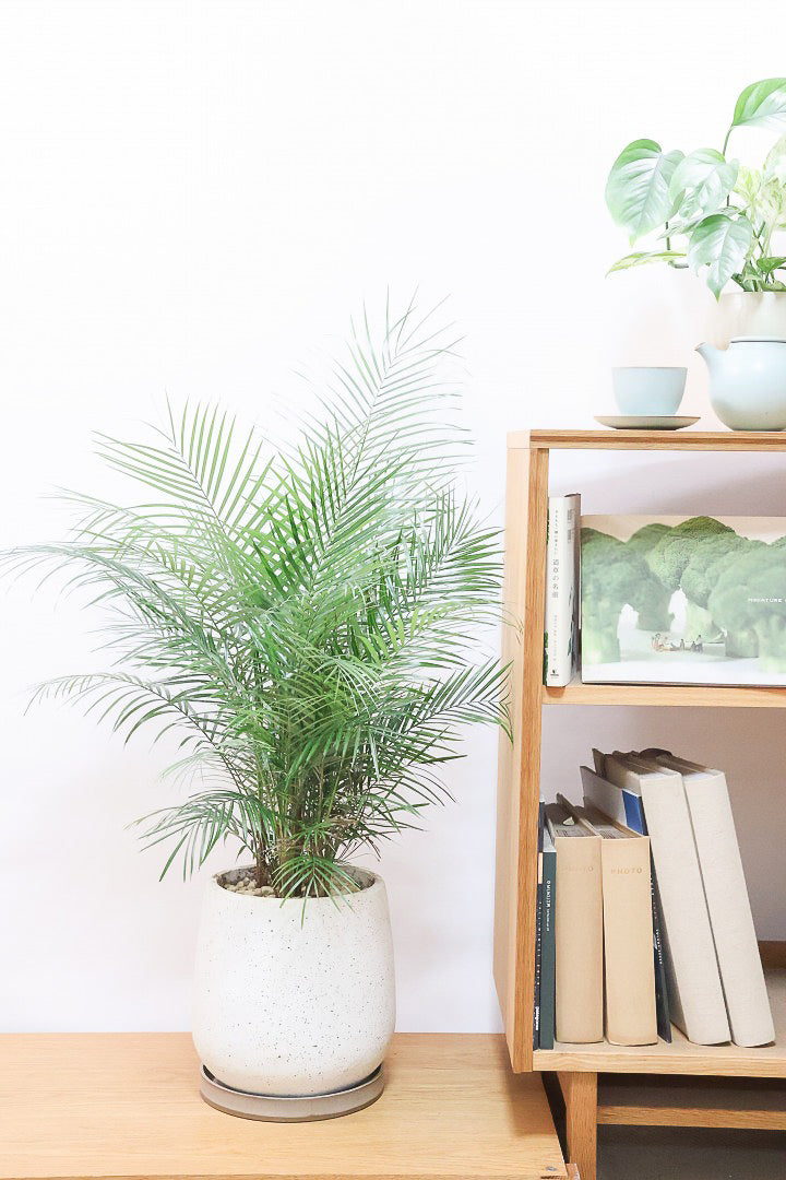 大きな葉っぱが存在感を示すヤシ。性質はとても健常で育てやすい観葉植物です。スタイリッシュでボリュームのある樹形が多いので、お部屋での設置場所を選ばない観葉植物です。