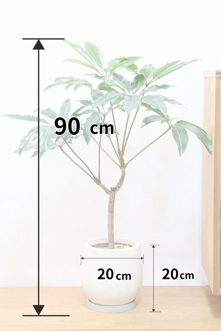 床置きタイプでテレビ台の横などのスペースで存在感を引き立てるサイズの観葉植物です。
