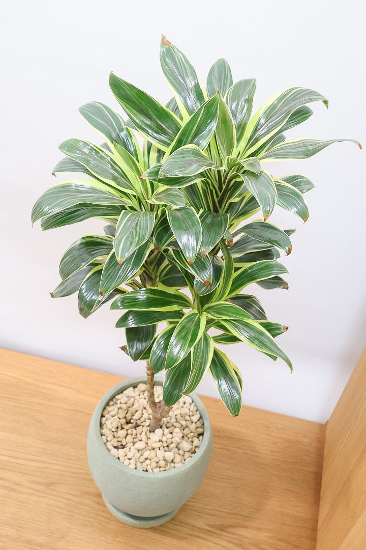 カラフルな葉っぱが存在感を示すコルジリネ。性質はとても健常で育てやすい観葉植物です。スタイリッシュでボリュームのある樹形なので、生長が楽しみな植物です。