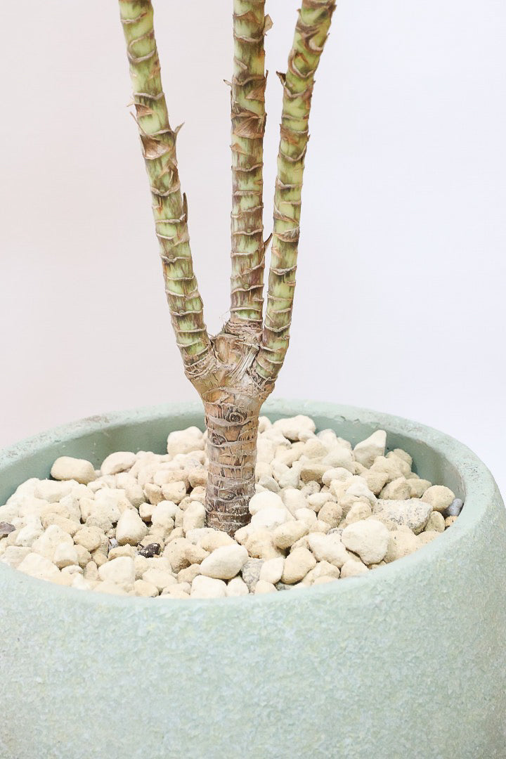 今回入荷のコルジリネは新芽がイエロー&グリーンのとても美しい品種です。特に日によく当てることでしっかりとした葉色に生長しますよ!