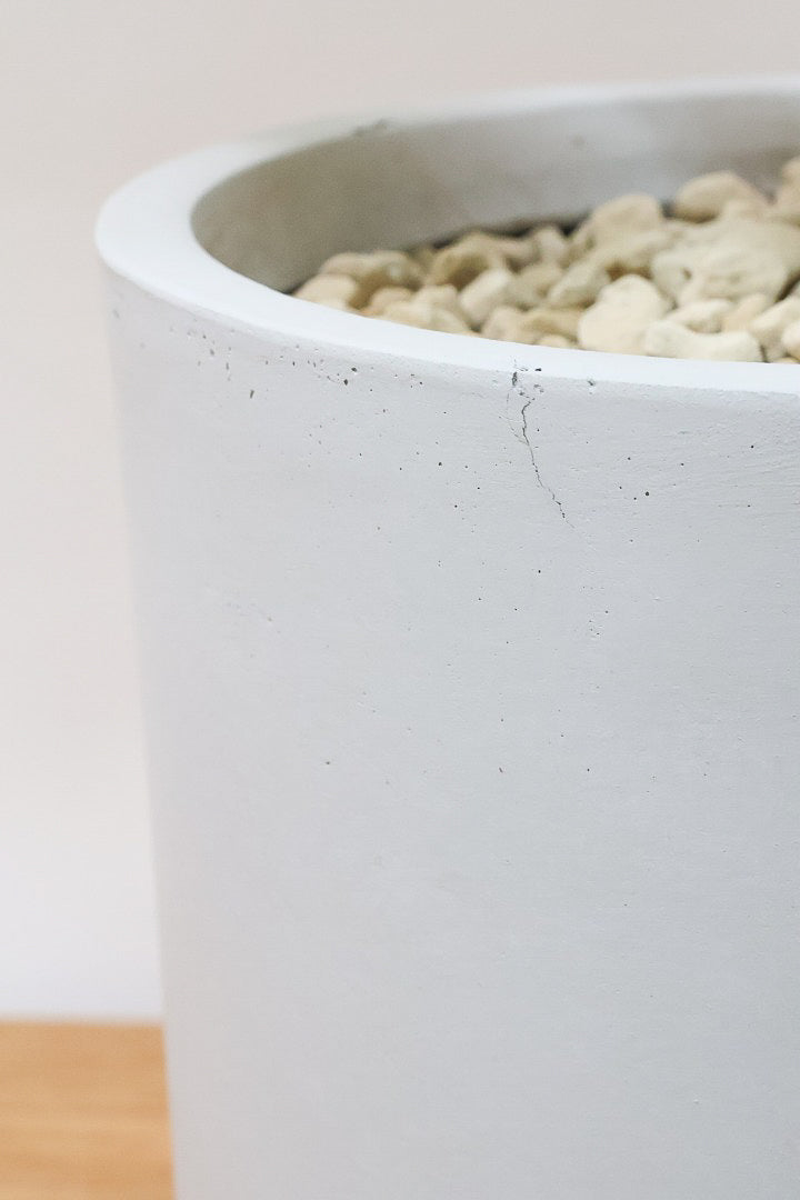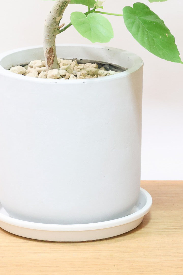 ファイバークレイ製の鉢です。こちらの商品の受け皿はプラスチック製となります。ファイバークレイとはガラス繊維から作られた耐久性に優れた素材です。