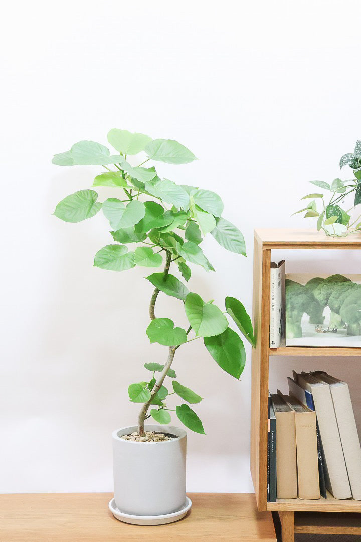 生長を見据えて選んだ陶器鉢は、3年程度植え替え不要。すぐに飾れる完成された姿でお届けします。