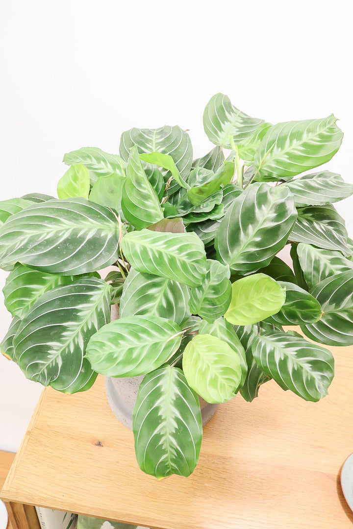 マランタは葉の模様がとても美しく人気の観葉植物です。ツル性に生長しますので、長くなった場合はカットして切り花としても楽しんでいただけます!時間の流れとともにお部屋に馴染んでいく観葉植物です。