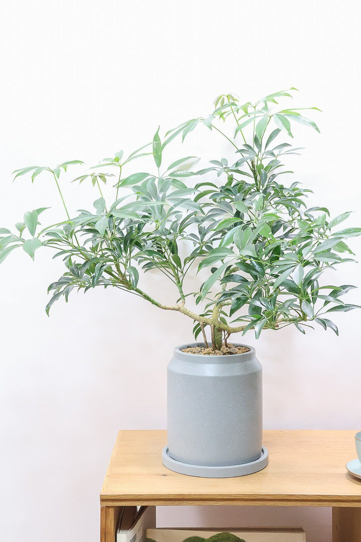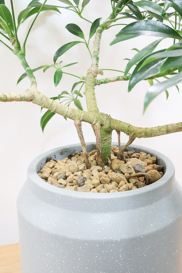 生長を見据えて選んだ陶器鉢は、3年程度植え替え不要。すぐに飾れる完成された姿でお届けします。