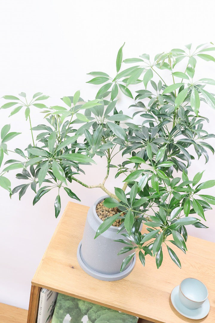 今回入荷のシェフレラはシェフレラの中でもとても育てやすいコンパクタという品種です!コンパクタはその育てやすさから人気の品種です。性質はとても健常で丈夫。個性的な樹形のものが多く、お部屋のメイングリーンになる観葉植物です。長い時間けて生長する楽しみな植物です。