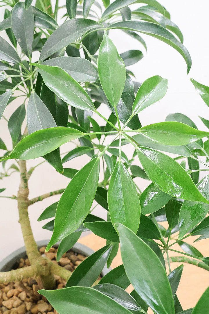 今回はとてもナチュラルな樹形!シェフレラは曲樹形のモノが多いのですが、このようにナチュラルな樹形に仕上がったものはめったに入荷しないのでこの機会にぜひ!