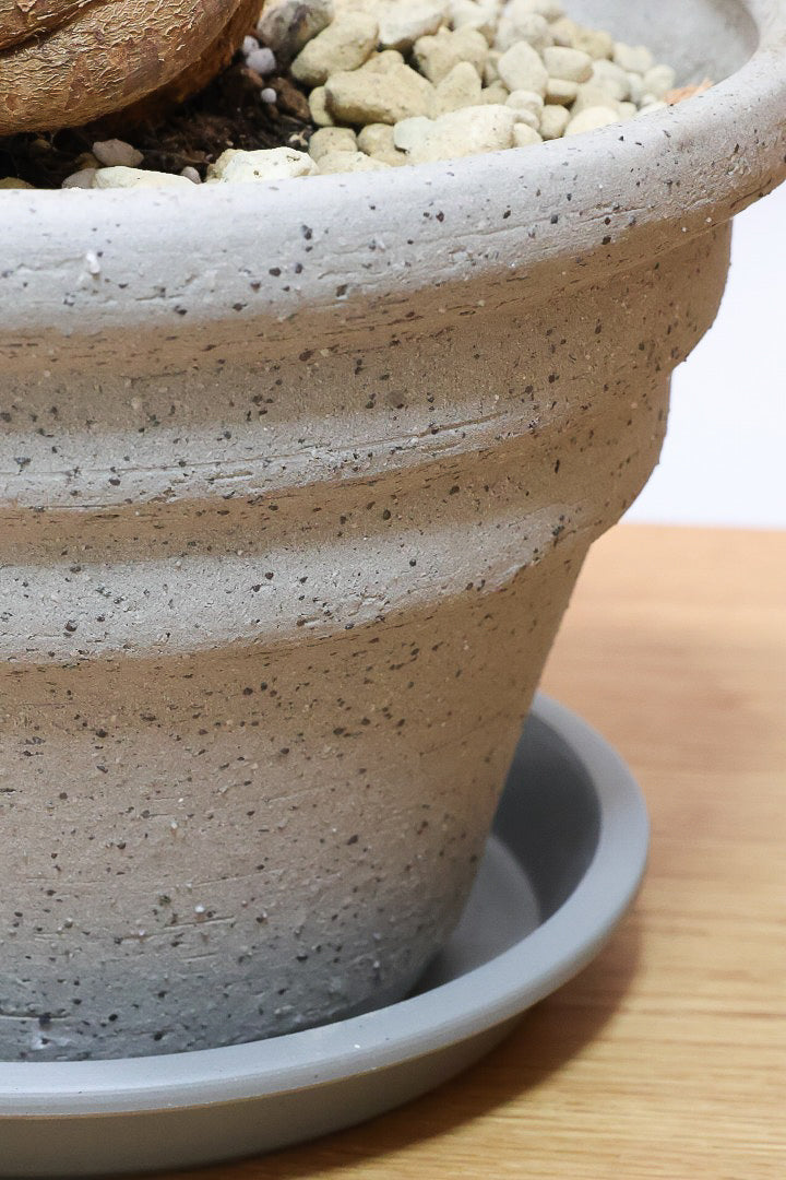 コンクリートの質感の陶器POTです※自然の風合いを大切にするため、色ムラや歪み、欠けなどが多少あります。ご了承ください。