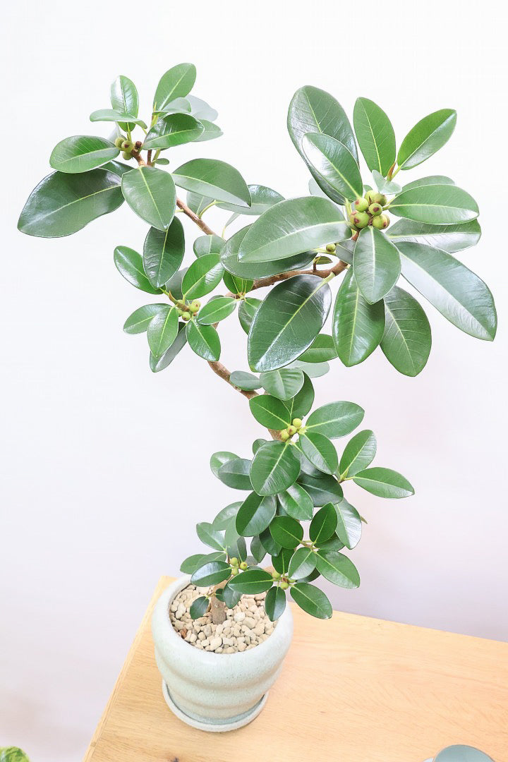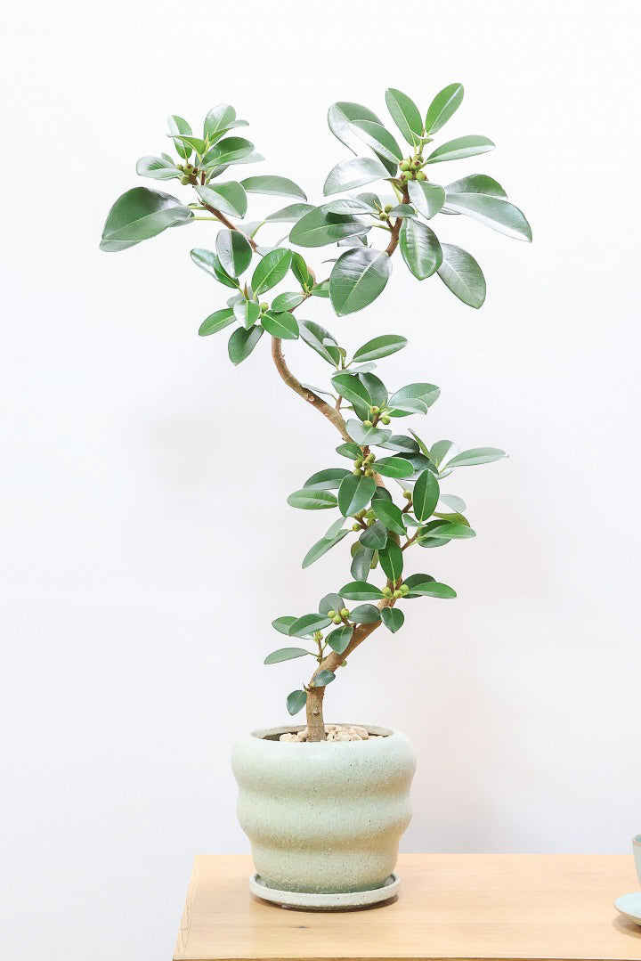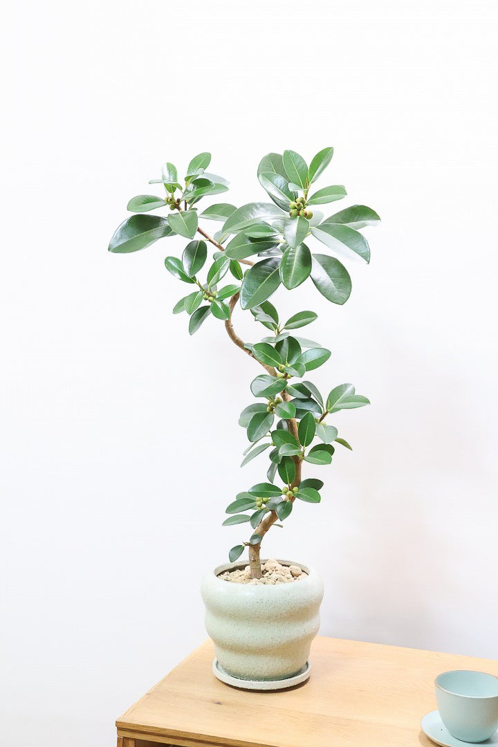 生長を見据えて選んだ陶器鉢は、3年程度植え替え不要。すぐに飾れる完成された姿でお届けします。