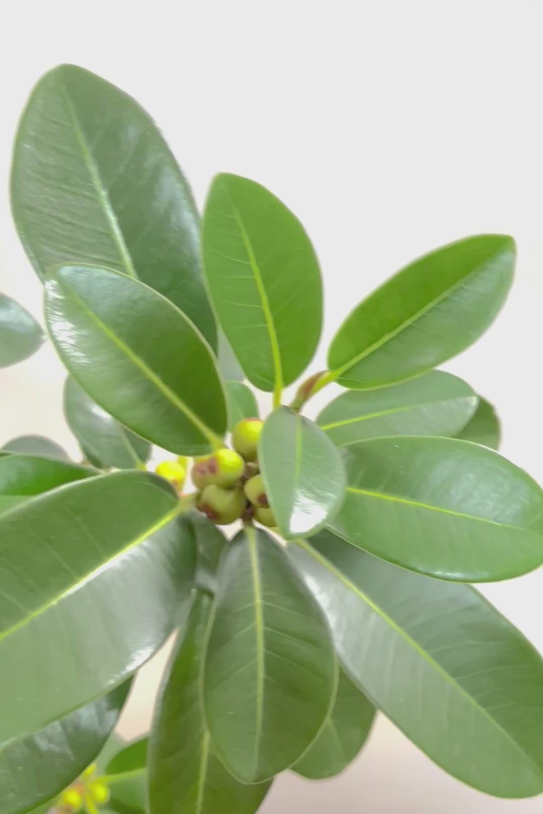 フランスゴムの新芽はかわいいライム色でとてもきれいです♪長い時間をかけて生長し、枝を伸ばしてナチュラルな樹形に変化していくので生長が楽しみな植物です。お部屋のインテリアとしてぴったりの植物です。