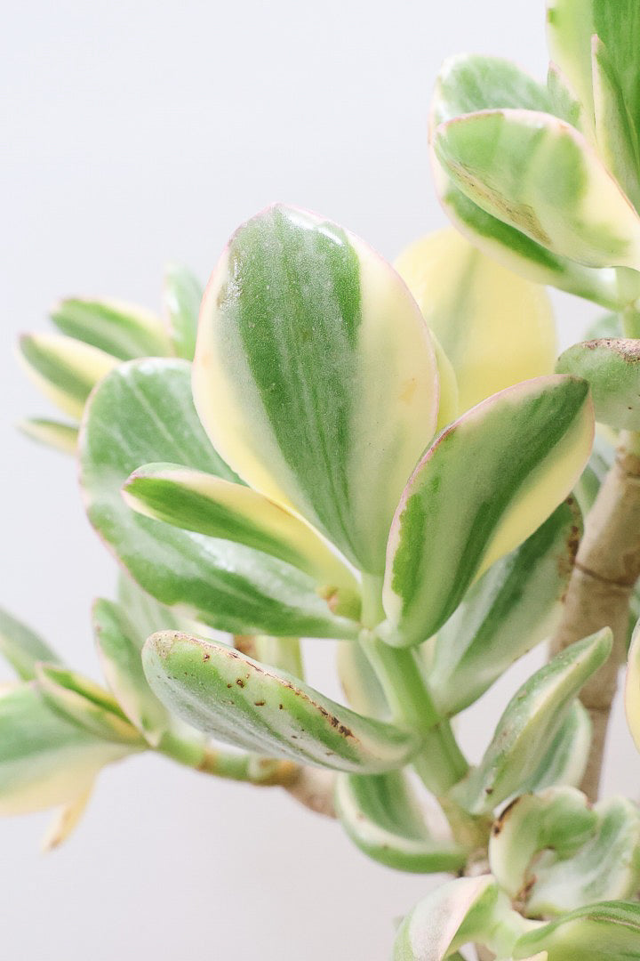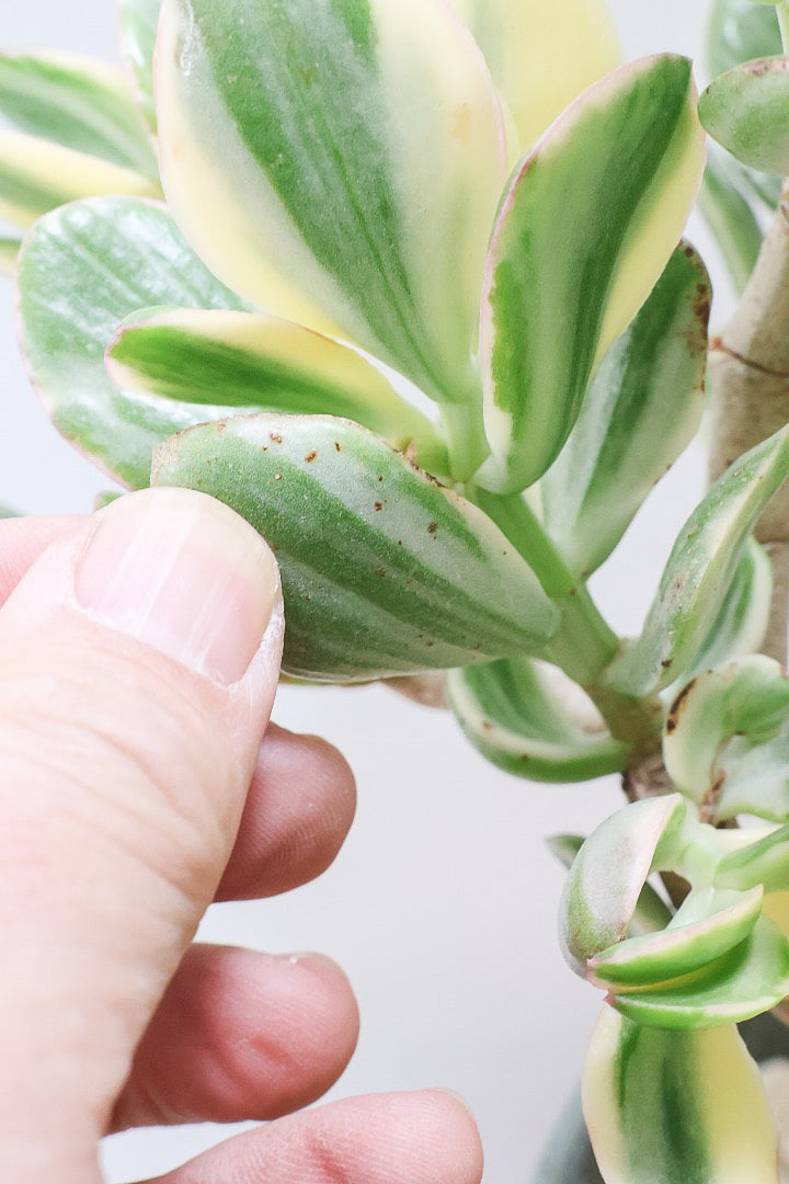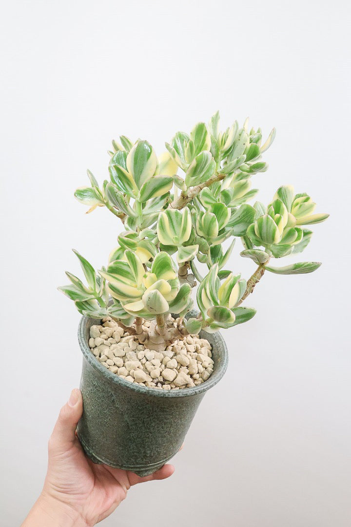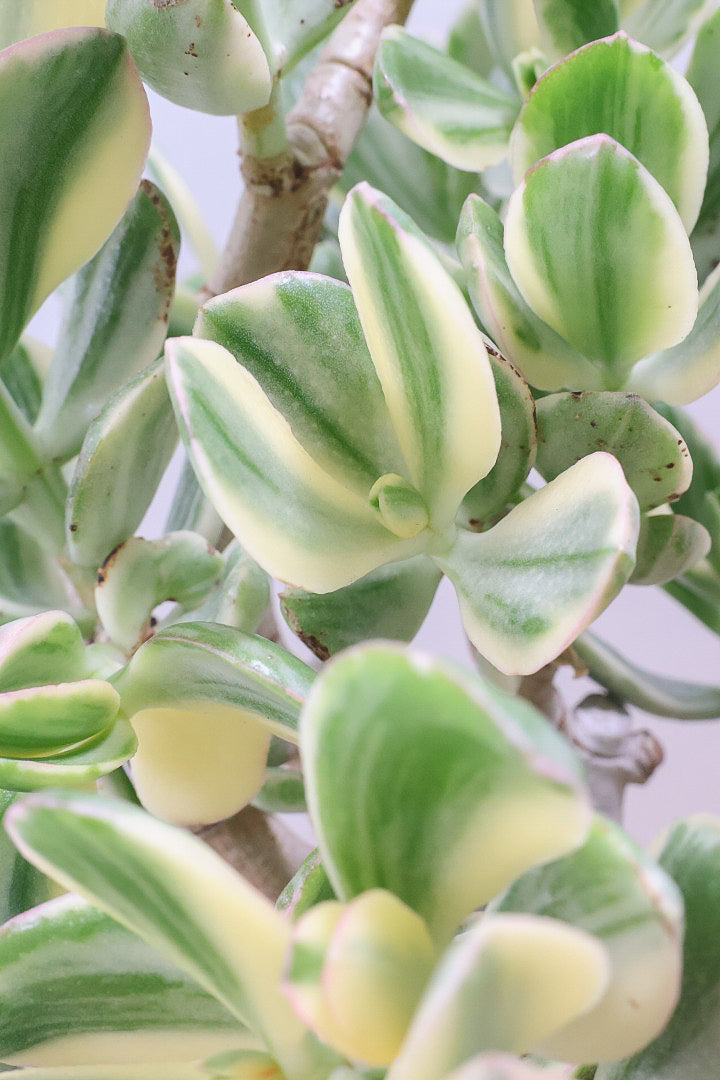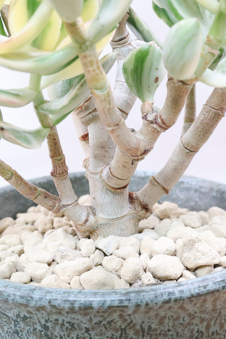 葉の質感は多肉質でプニプニしていてとても丈夫です。クラッスラはこの太い幹や葉の中に水分を蓄えています。ちょっとぐらい水やりを忘れてもへっちゃら!!安心して育てることができます!