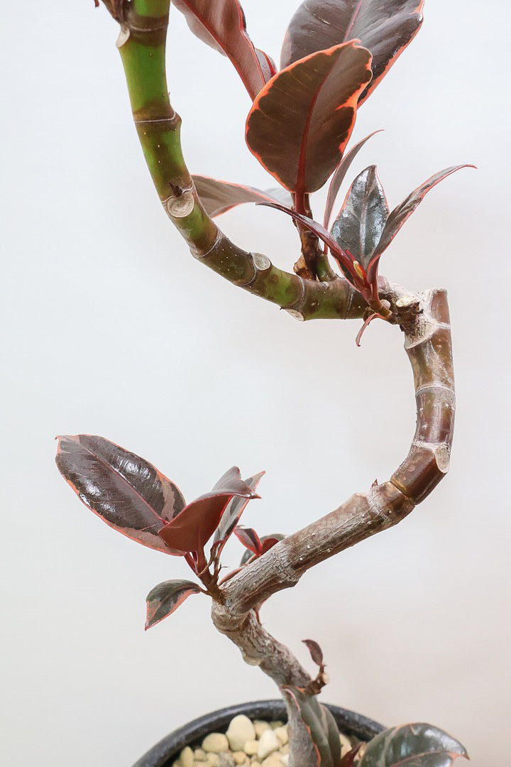 今回入荷のルビーは幹のカーブも美しいですし、葉のバランスもいい感じです!葉は当店でしっかりと養生しましたので、絶品です!葉の質感はとても繊細で優しい質感です。長い時間をかけて生長する植物ですので、お部屋のインテリアとしてぴったりの植物です。