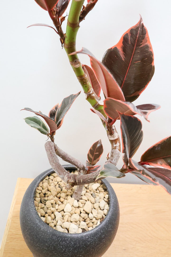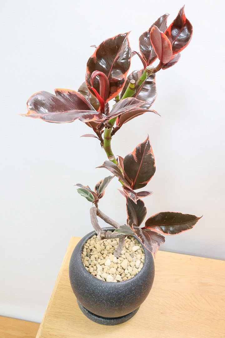 【フィカス ルビー】流れるような美しい幹!このサイズの曲樹形のものはかなり久々の入荷です!おすすめ!いい葉色しています!