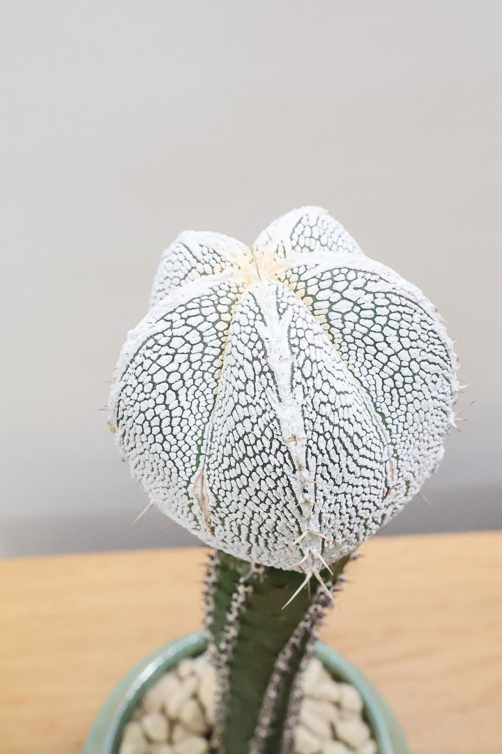 今回入荷の月宮殿はサボテンの仲間です。接木と言って異なる植物の台木に接ぎ木をしたタイプ。接ぎ木タイプの方が水の管理もしやすく丈夫に生長しますので、初めてサボテンを育てる方にも安心です。