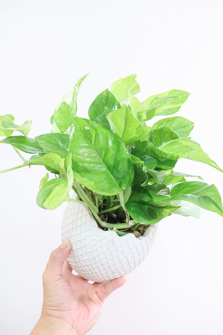 小さくてかわいい葉が人気のポトス♪葉っぱがとてもキュート♪新芽は小さくてツヤツヤしているのでとてもきれいです♪ツル状にどんどん新芽を出して生長しますので過程が楽しめます。お部屋のインテリアとしてぴったりの植物です。