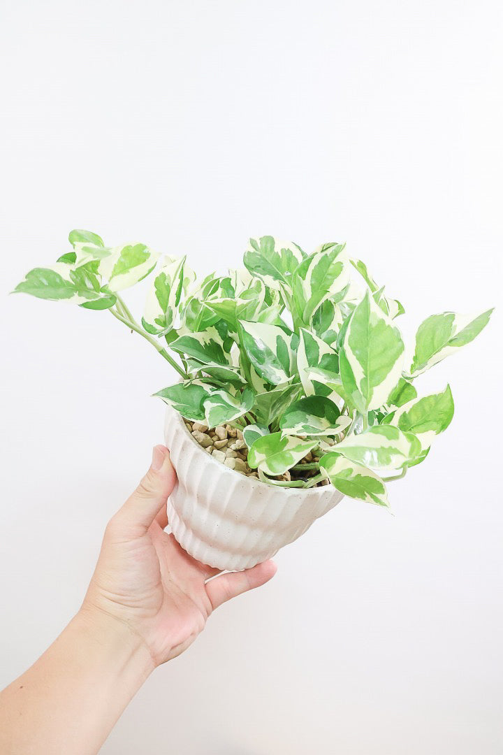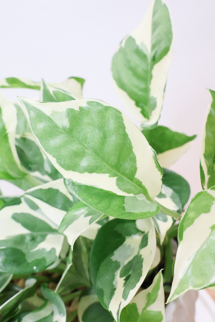 今回入荷のエンジョイはポトスの中でも比較的に新しい品種です。ホワイト&グリーンの葉が美しいのはもちろん、葉の形もとても愛らしい品種です!