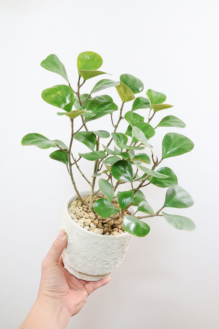 ゴールドコインはゴムの木の仲間でとにかく丈夫で育てやすい!!葉っぱ一枚一枚がと肉厚で存在感がある植物です。長い時間をかけて生長する植物ですので、お部屋のインテリアとしてぴったりの植物です。