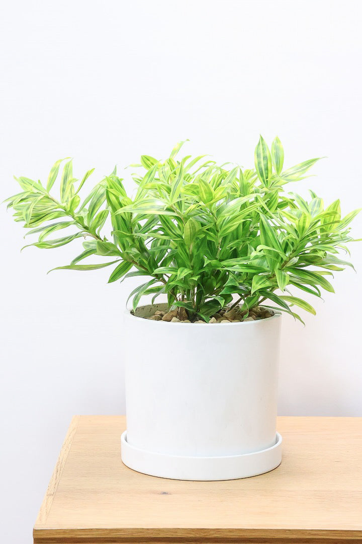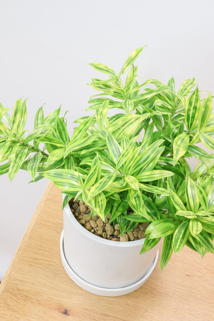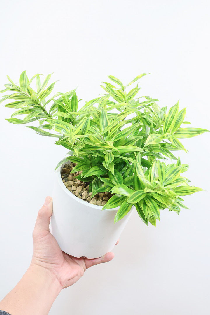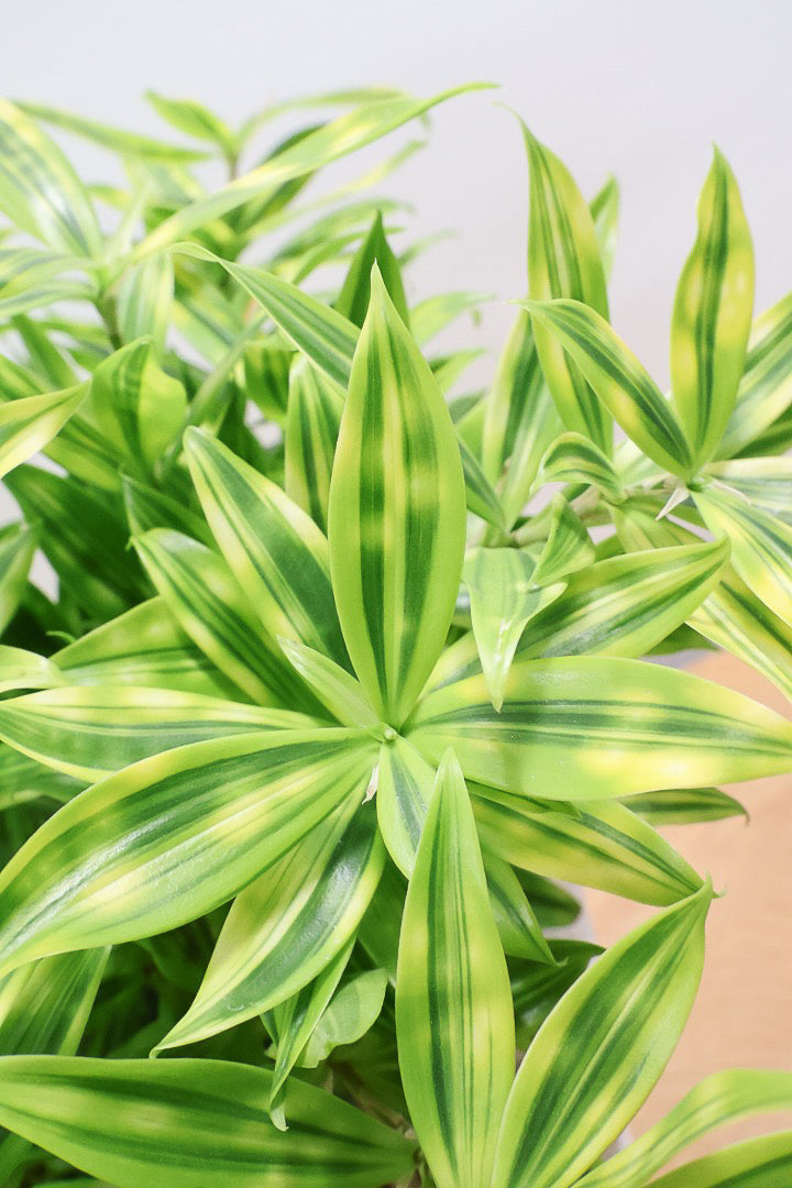 葉色はとても明るくて爽やかな印象!ドラセナはとにかく丈夫で育てやすい!!ミニサイズなのでスペースの限られた場所でも存在感を示します!お部屋のインテリアはもちろん開店、開業などのお祝いのシーンにも大活躍の観葉植物です!!