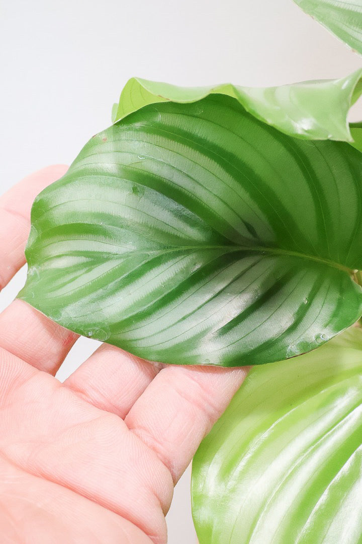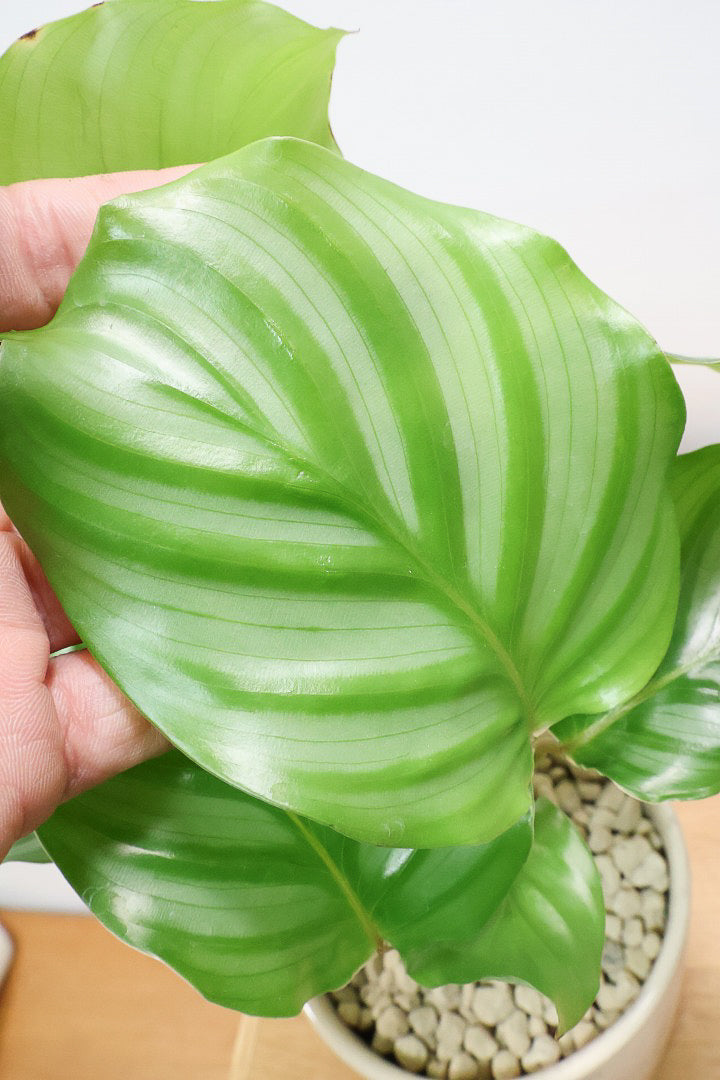 甘い葉色!古くからある品種ですが、今でも根強いAPEGOのNO.1の人気種!カラテアの中でも大き目の葉ですので、生長すると見応えのある樹形に変身しますよ!