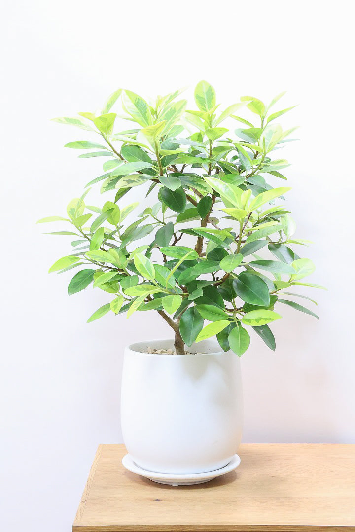 【ベンジャミン シタシオン】幹がしっかりとしていますが、かわいいミニサイズ!爽やかな葉!!カールした斑入りの葉が人気なんです!