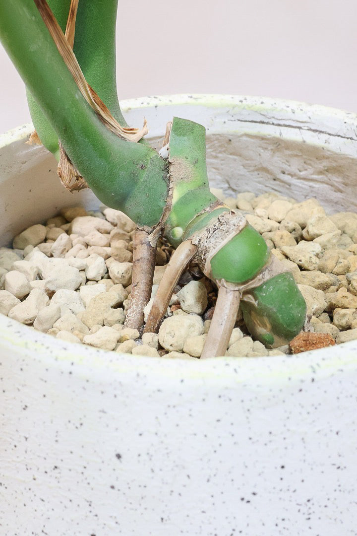 モンステラは1枚1枚が異なる切れ込みになりますので、生長とともに表情を楽しむことのできる人気の観葉植物です。長い時間けて生長し、葉を伸ばしてナチュラルな樹形に変化していくので生長が楽しみな植物です。時間の流れとともにお部屋に馴染んでいく観葉植物です。
