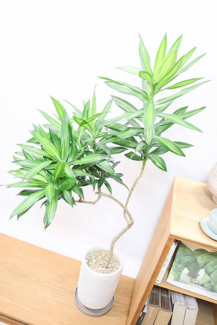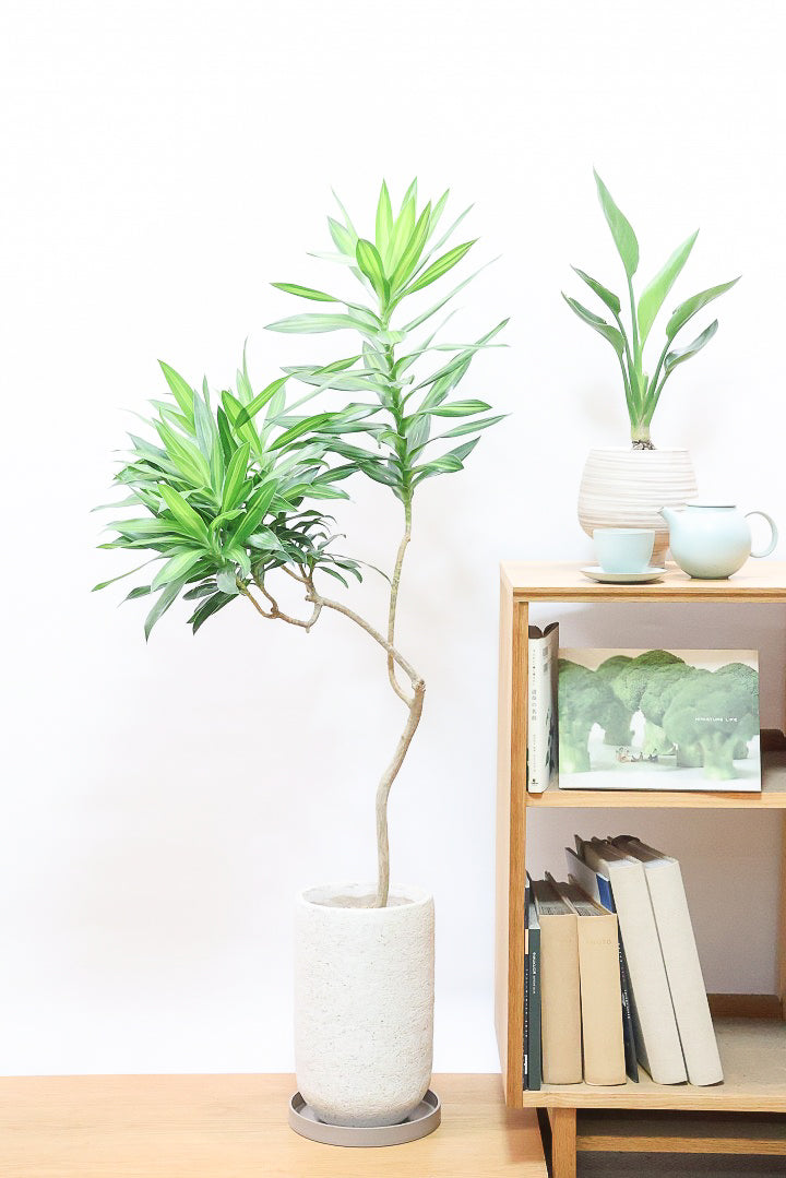 明るくて鮮やかな葉が人気の観葉植物です。葉のトーンが明るいので贈り物にも大人気の観葉植物。とても育てやすいので会社の開業や移転、お店の開店祝いなどにも人気です。長い時間けて生長し、葉を伸ばしてナチュラルな樹形に変化していくので生長が楽しみな植物です。時間の流れとともにお部屋に馴染んでいく観葉植物です。