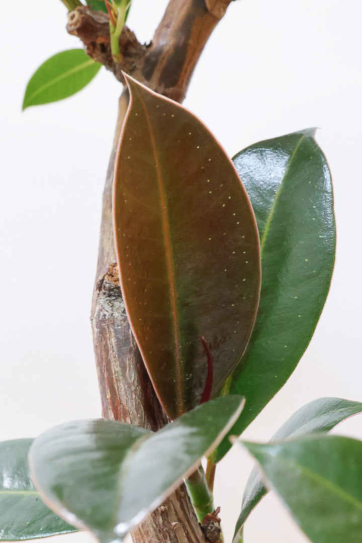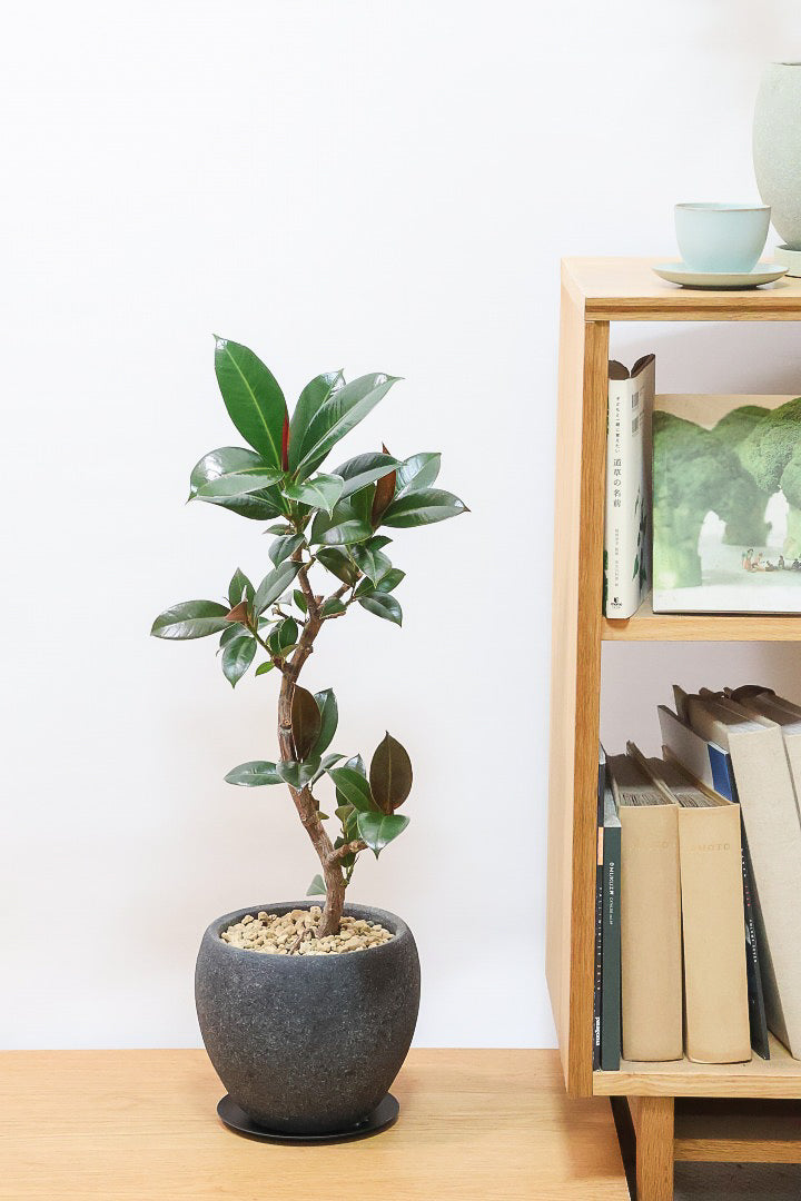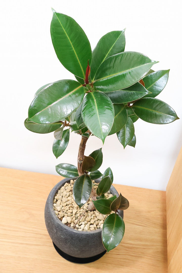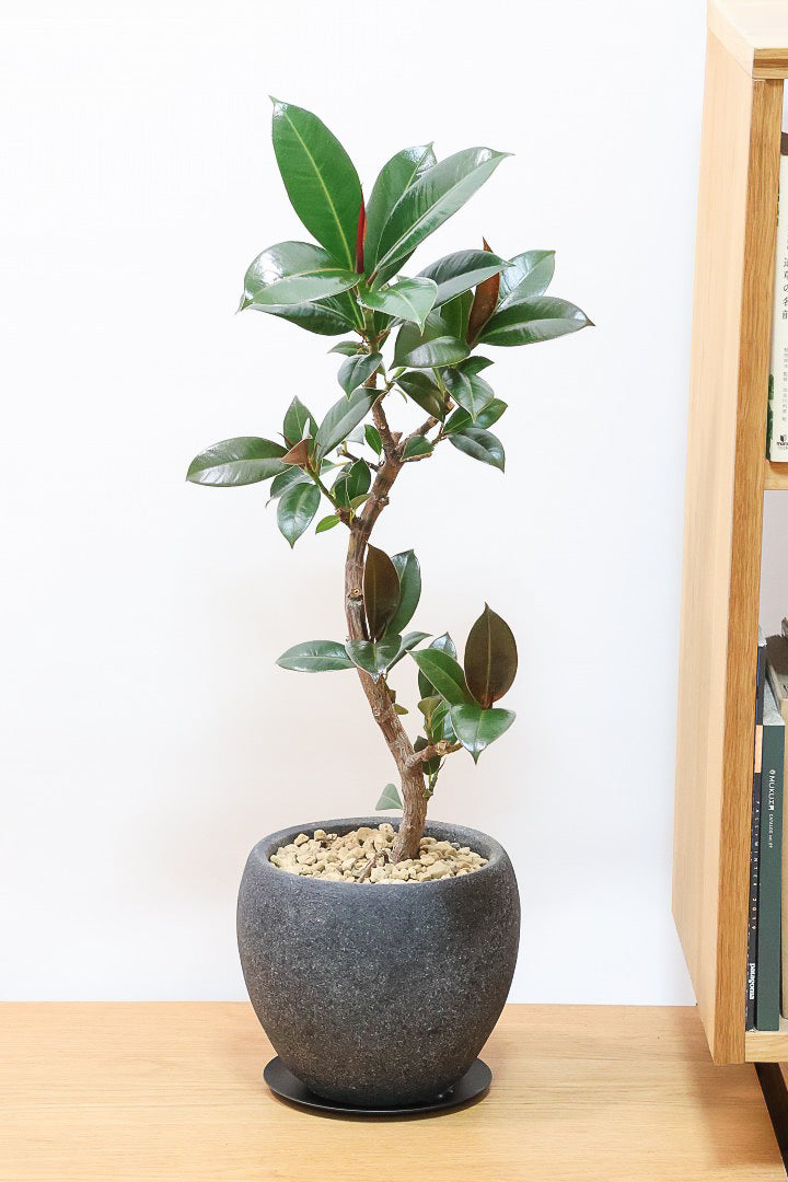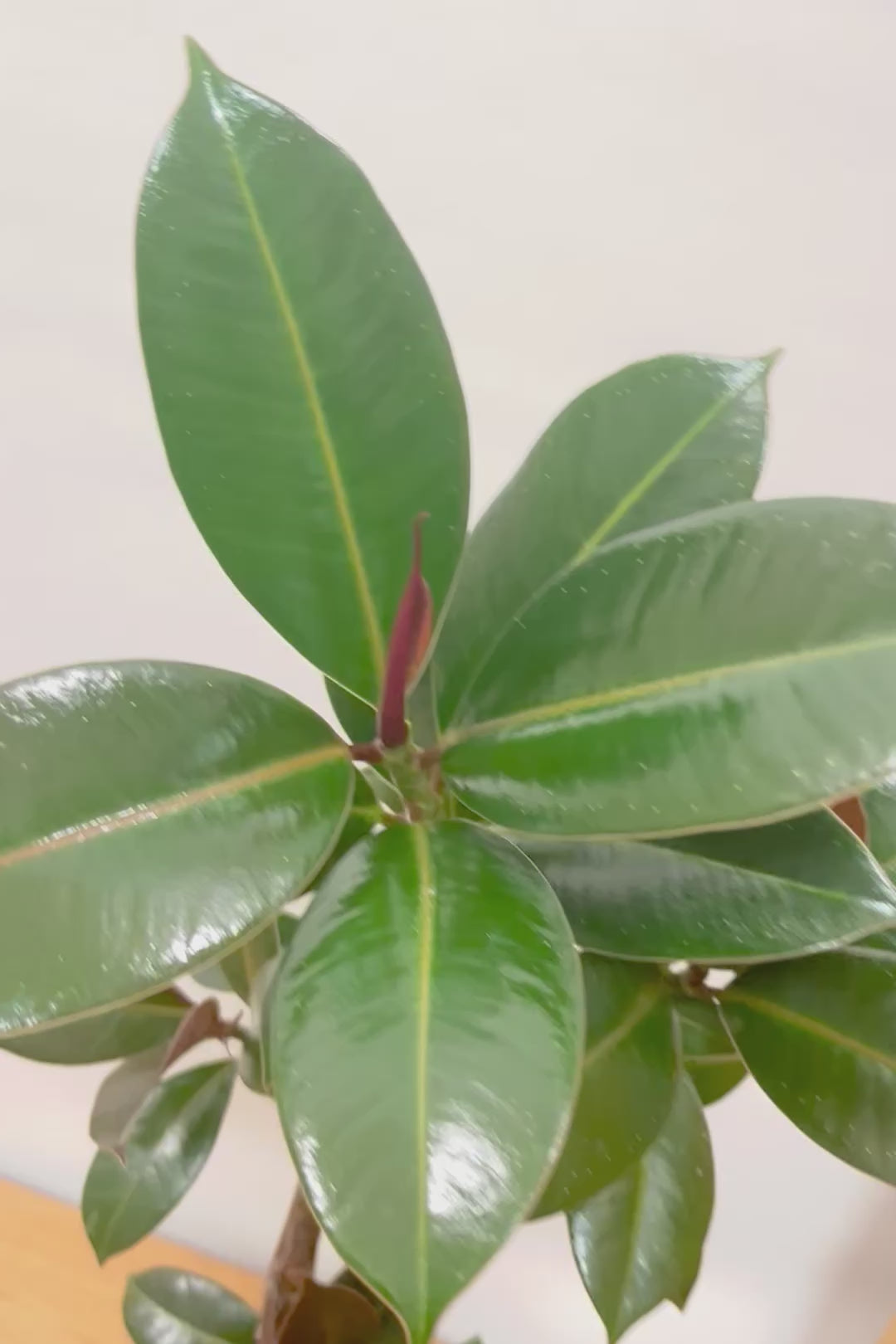 ゴムの木の仲間でとにかく丈夫で育てやすい!!葉っぱ一枚一枚がと大きいので存在感がとてもある植物です。葉の質感は肉厚でとてもしっかりとしています。長い時間をかけて生長する植物ですので、お部屋のインテリアとしてぴったりの植物です。