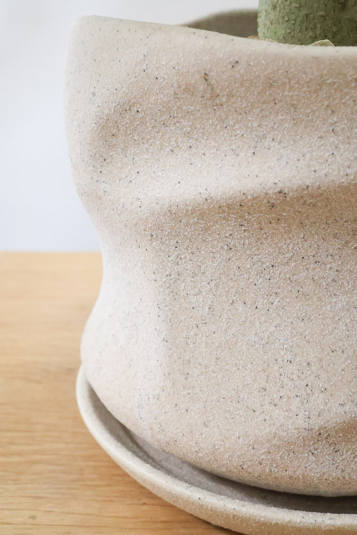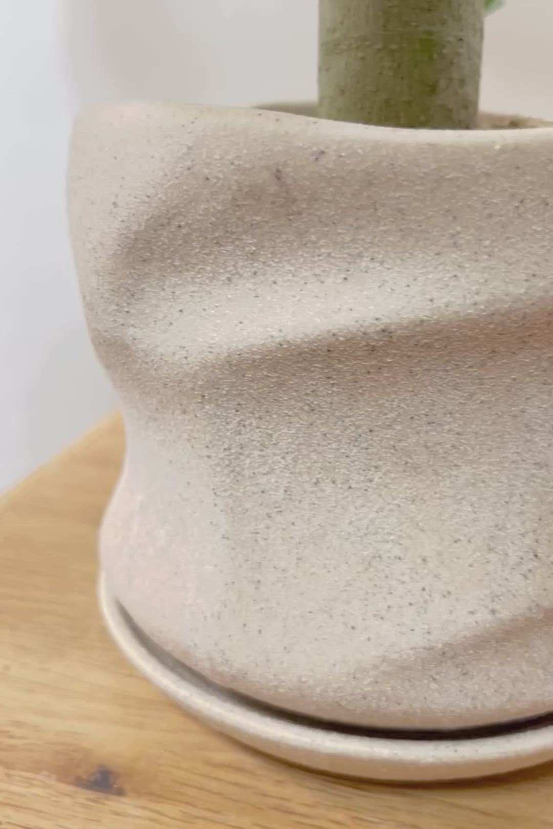 ゴツゴツした質感の陶器POTです。※自然の風合いを大切にするため、色ムラや歪み、欠けなどが多少あります。ご了承ください。