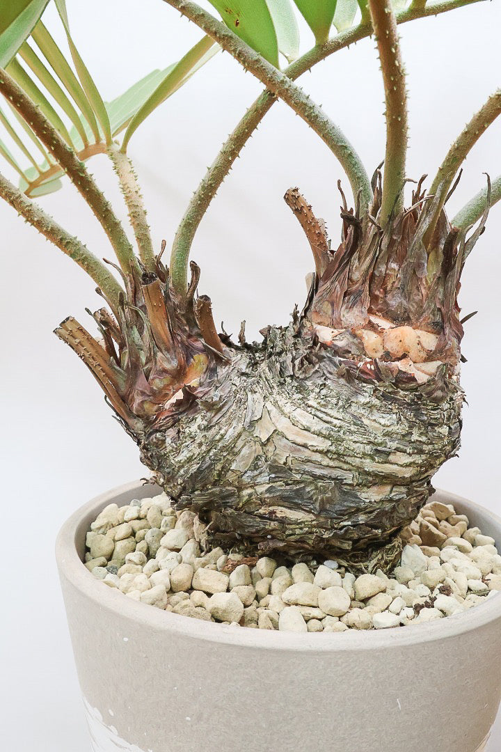 今回入荷のフルフラケアは何といってもこの個性的でかわいい幹が特徴!ソテツの仲間なのでとても丈夫で育てやすいです!数ある個体の中からいい株を選んできました!