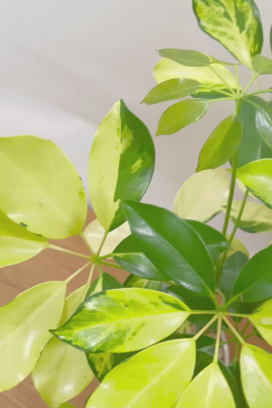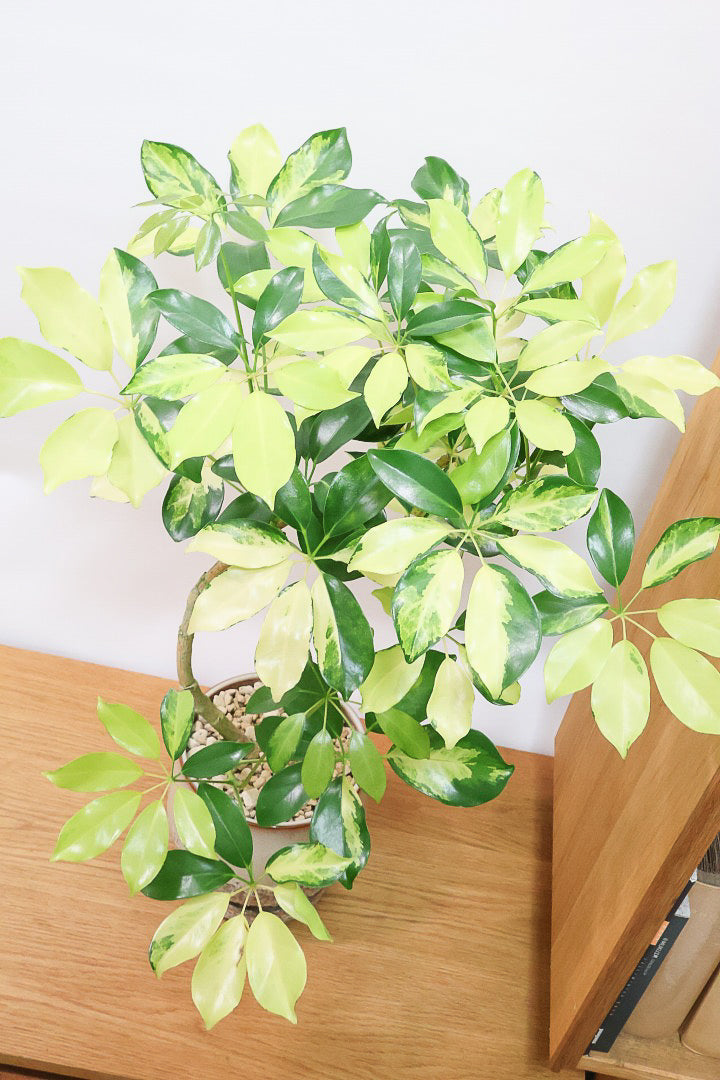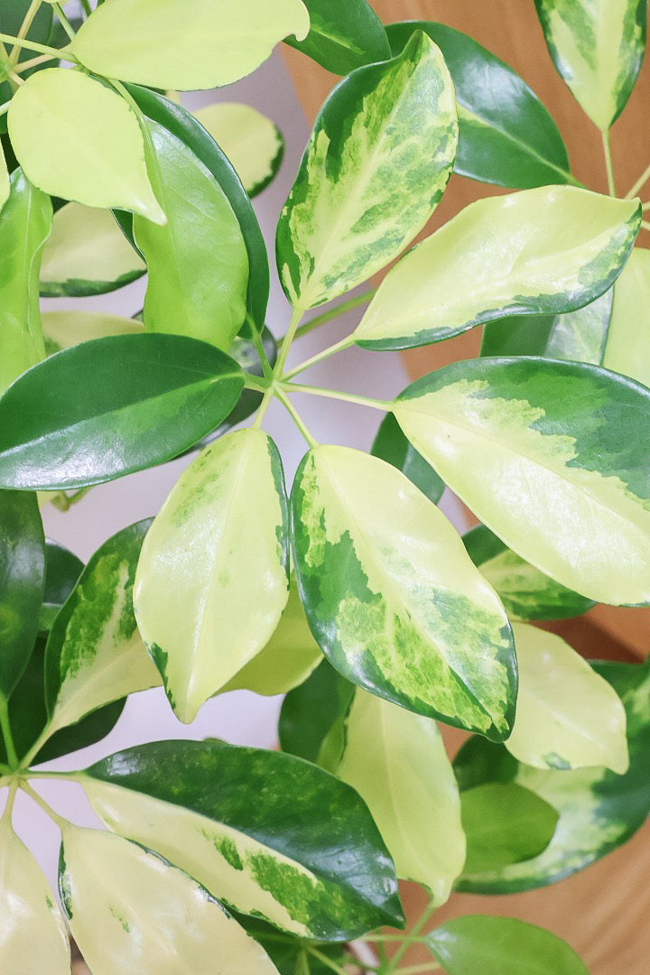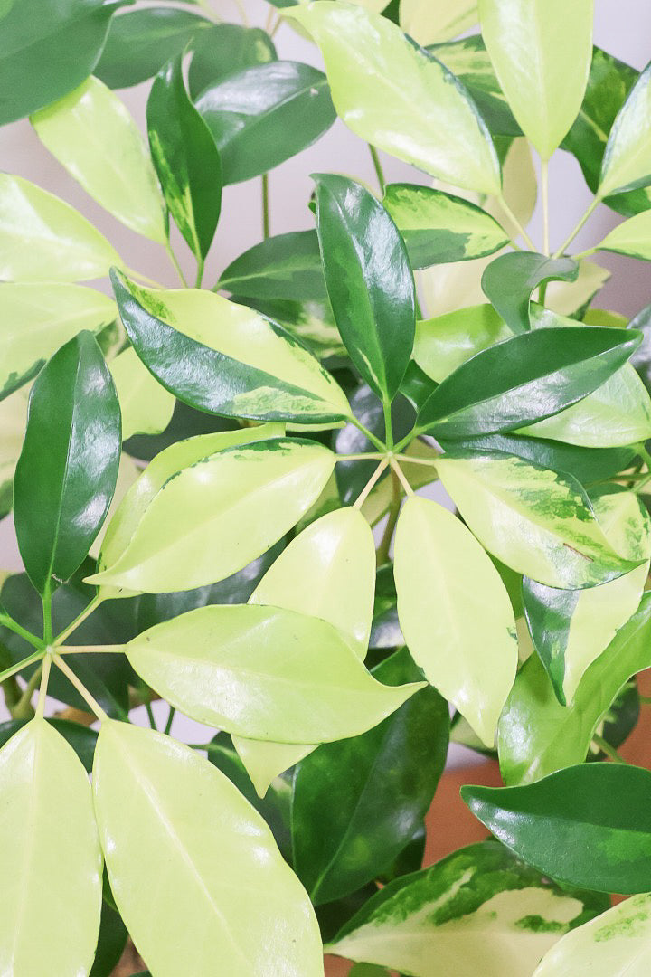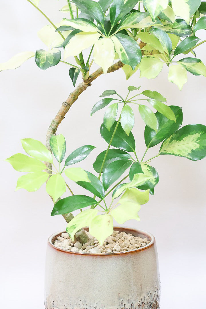 今回入荷のゴールドリーフはシェフレラの中でも大き目の葉っぱが特徴。そして何よりも葉のコントラストが抜群に美しいです!シェフレラの中でも育てやすく丈夫な品種ですので自信をもってお勧めします!
