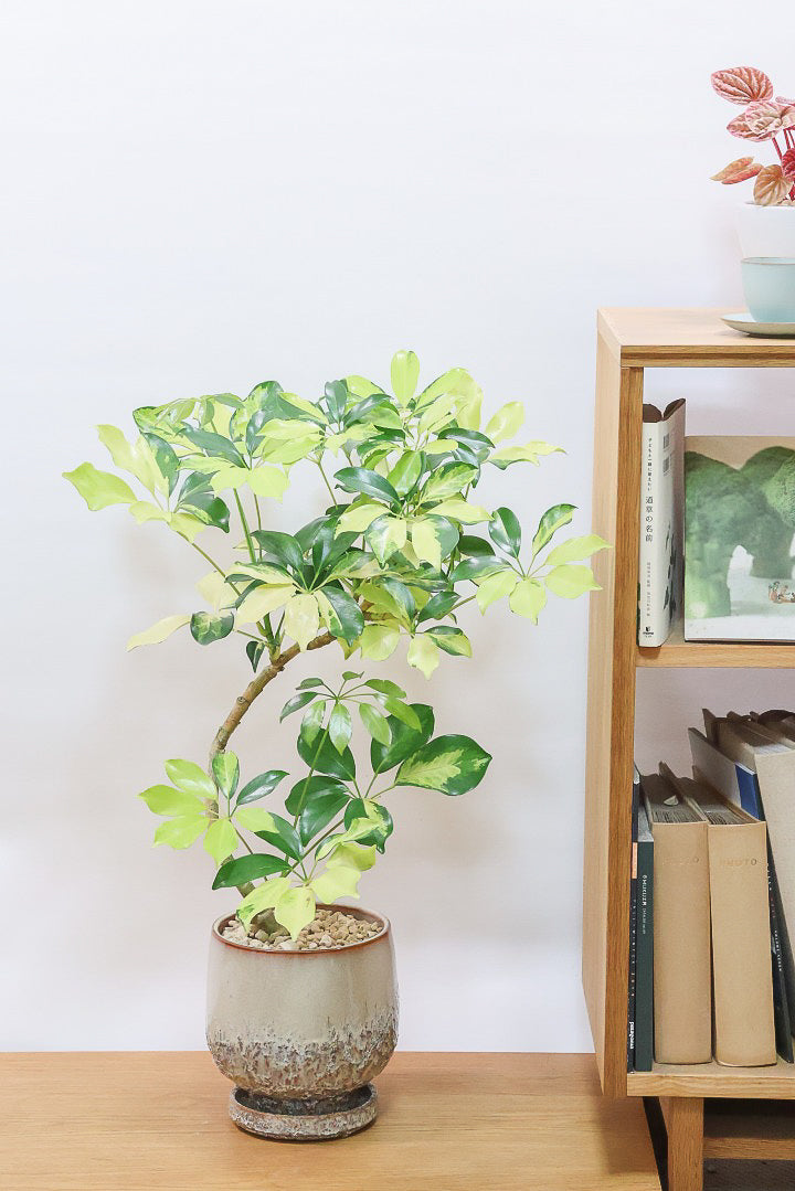 シェフレラとにかく育てやすくて丈夫な観葉植物。性質はとても健常で丈夫。個性的な樹形のものが多く、お部屋のメイングリーンになる観葉植物です。長い時間けて生長し、葉を伸ばしていくので生長が楽しみな植物です。