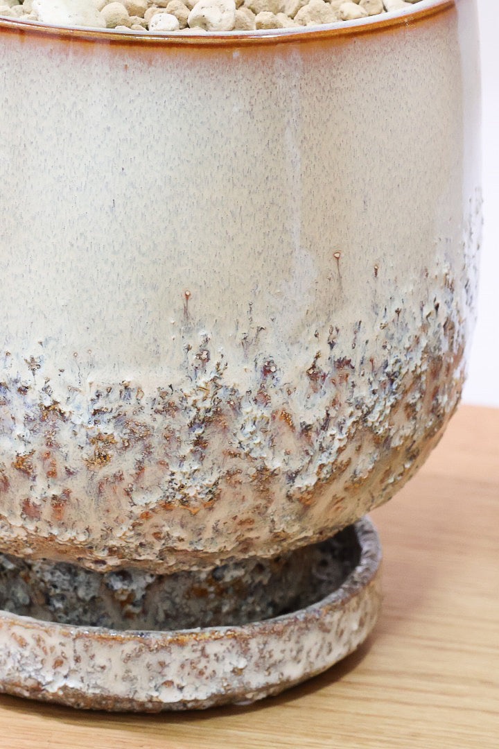 ゴツゴツした質感の陶器POTです。※自然の風合いを大切にするため、色ムラや歪み、欠けなどが多少あります。ご了承ください。