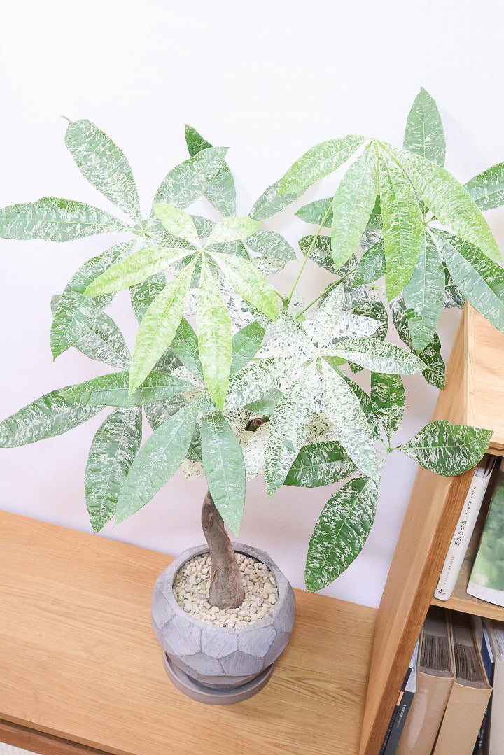 【パキラ ミルキーウェイ】個性的なテクスチャーのPOT!しかもボリュームあります!ホワイト&グリーンの葉がとても美しい!!あまり作られていない希少な観葉植物です!