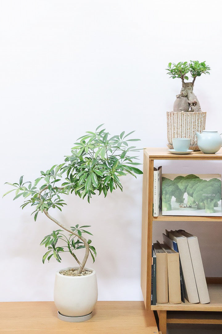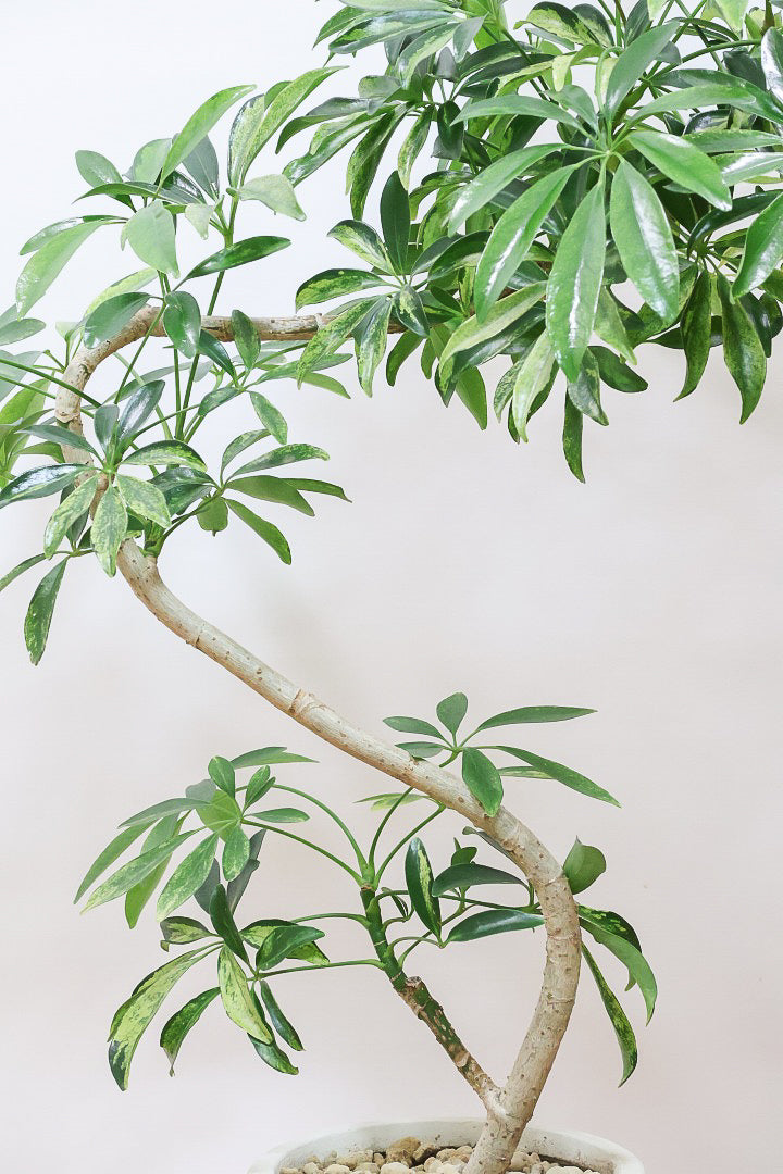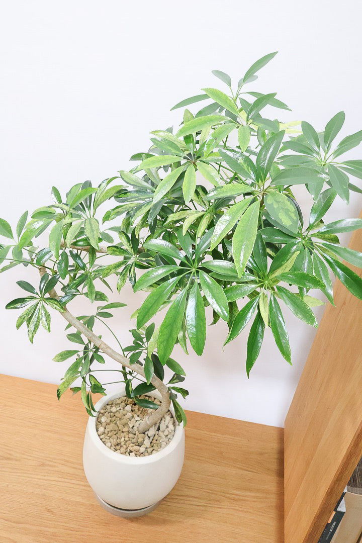 シェフレラとにかく育てやすくて丈夫な観葉植物。性質はとても健常で丈夫。個性的な樹形のものが多く、お部屋のメイングリーンになる観葉植物です。長い時間けて生長し、葉を伸ばしていくので生長が楽しみな植物です。