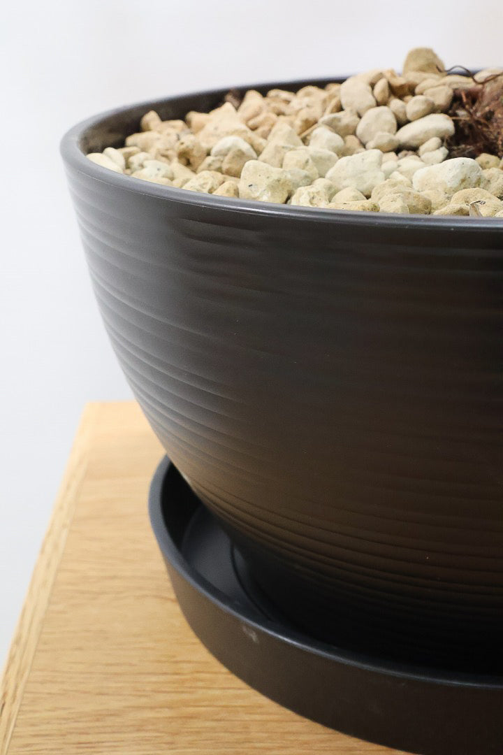 こちらのPOTはプラスチック素材となります。軽量でとても扱いやすいのですが、普通のプラスチックPOTよりも趣があります。