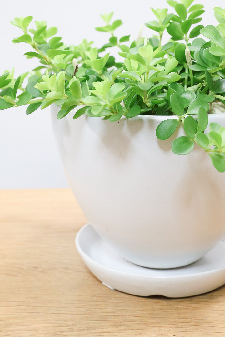 【ペペロミア デピーナ】ミニミニのかわいい葉。ペペロミアの中でも肉厚でかわいい葉です!POTはシンプルなホワイトを合わせました!