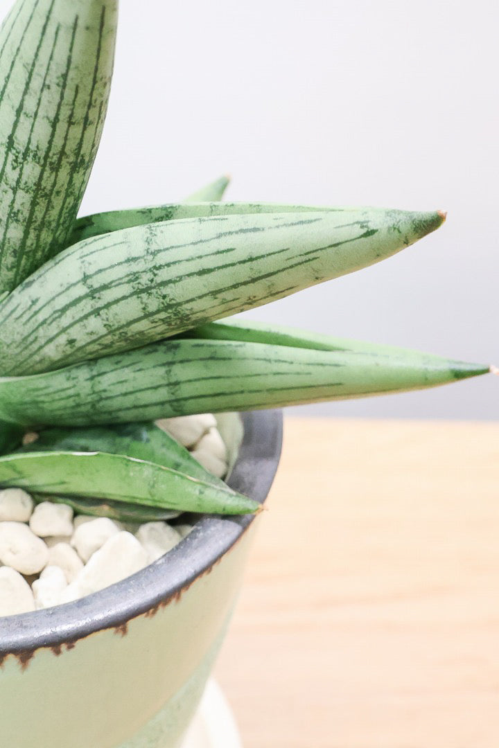 マイナスイオンを放出することで有名なサンスベリア♪葉の質感は多肉質でやや硬くとても丈夫です。新芽も出てくるので生長も楽しめます。生長すると小株がタケノコのようにニョキニョキ出てきて生長していきます。
