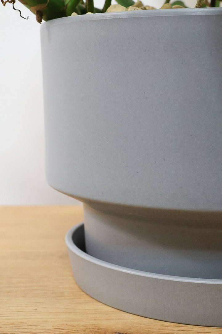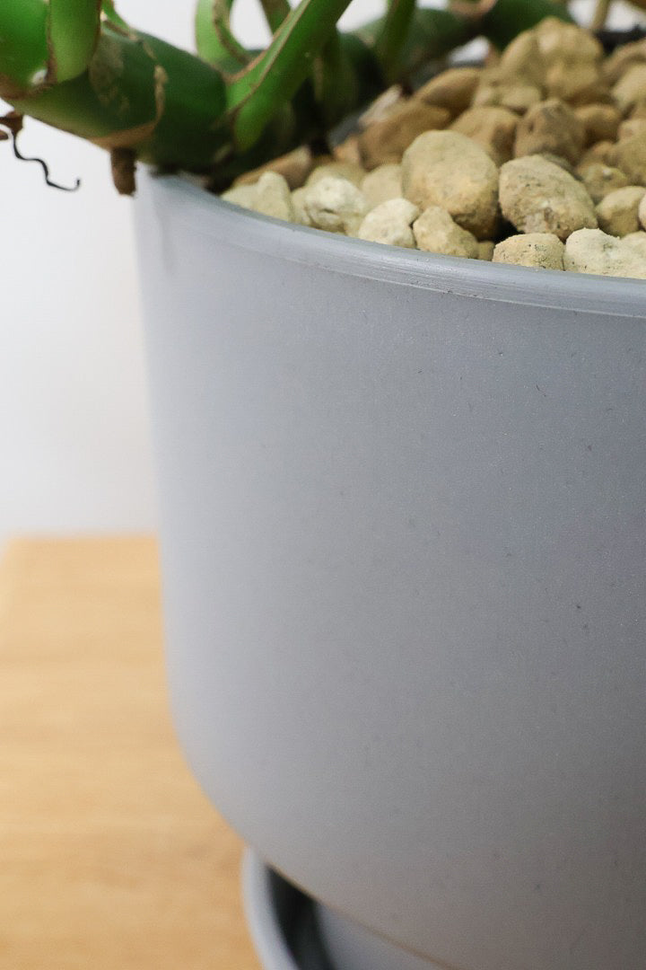 マッドな質感のプラスチック製のPOT。もちろん受け皿付きです!!