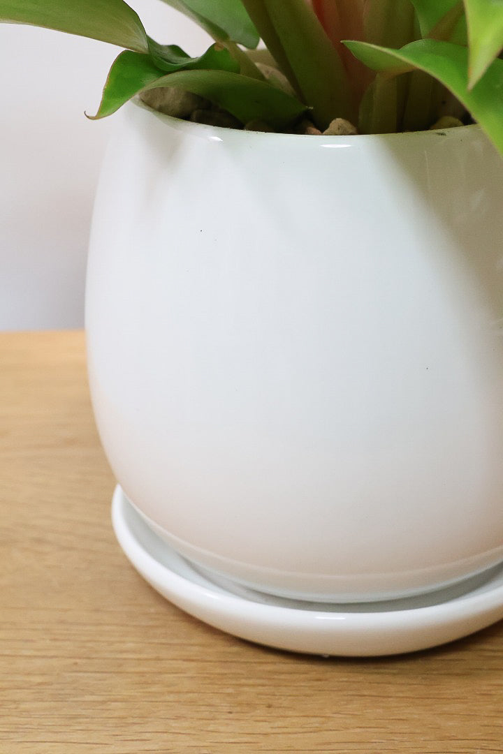 POTはマッドな質感のホワイトの陶器鉢。もちろん受け皿付きです!!