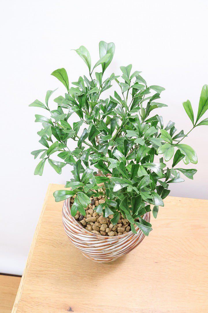 チェストの上など、さりげなく緑を感じられるサイズの観葉植物です。