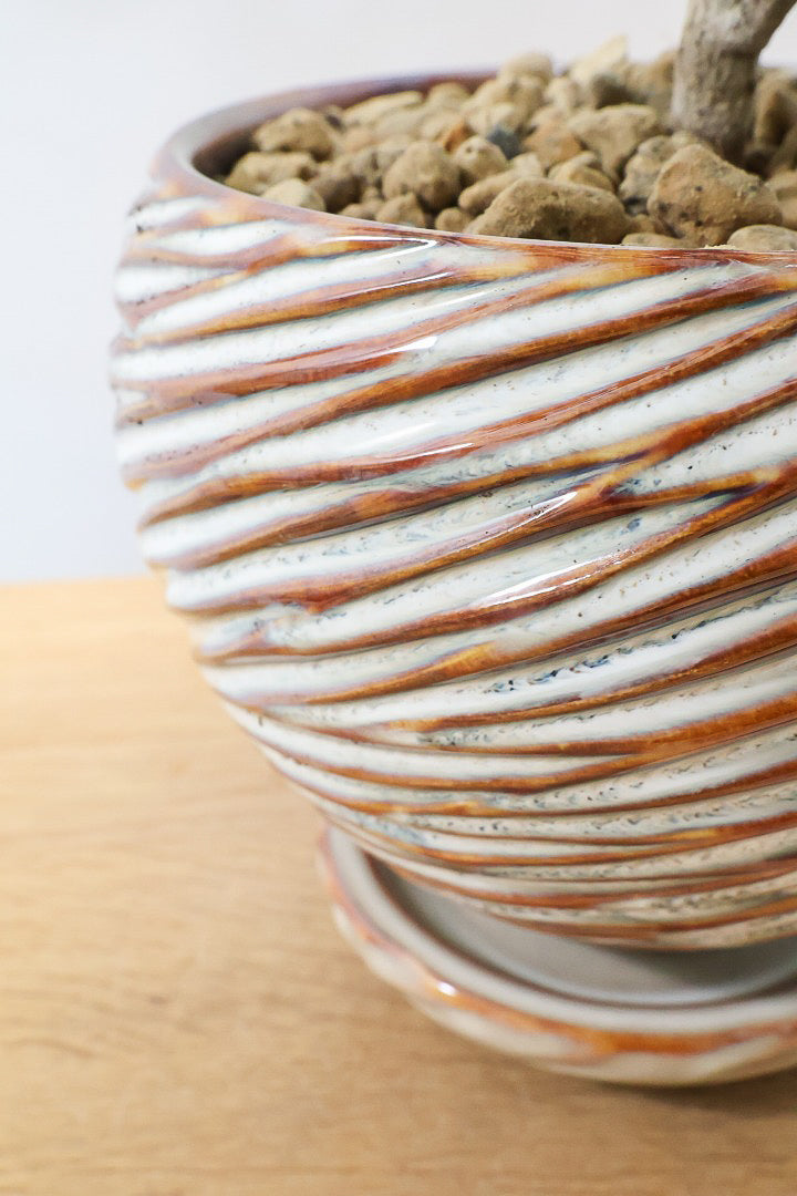 ゴツゴツした質感の陶器POTです。※自然の風合いを大切にするため、色ムラや歪み、欠けなどが多少あります。ご了承ください。