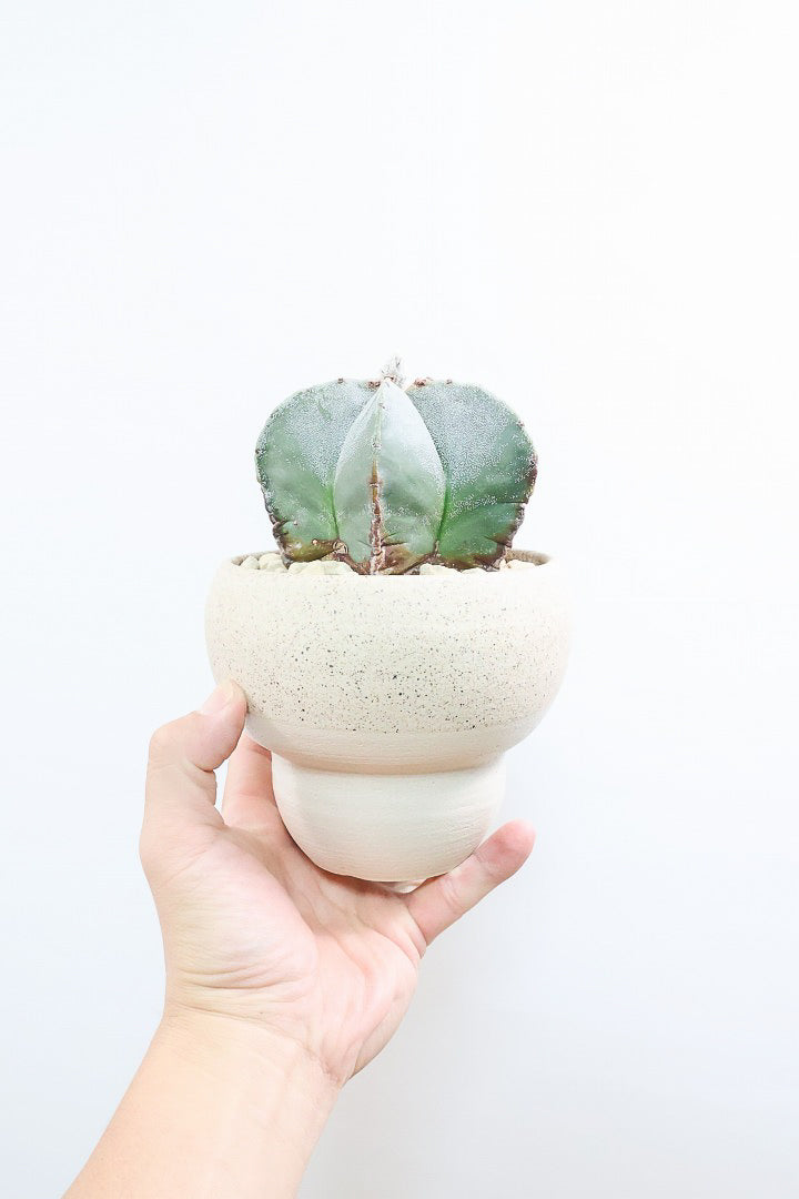 今回入荷のアストロフィツムは生長がかなりゆっくりで有名なサボテン。この大きさでもかなりの年月がかかっています。