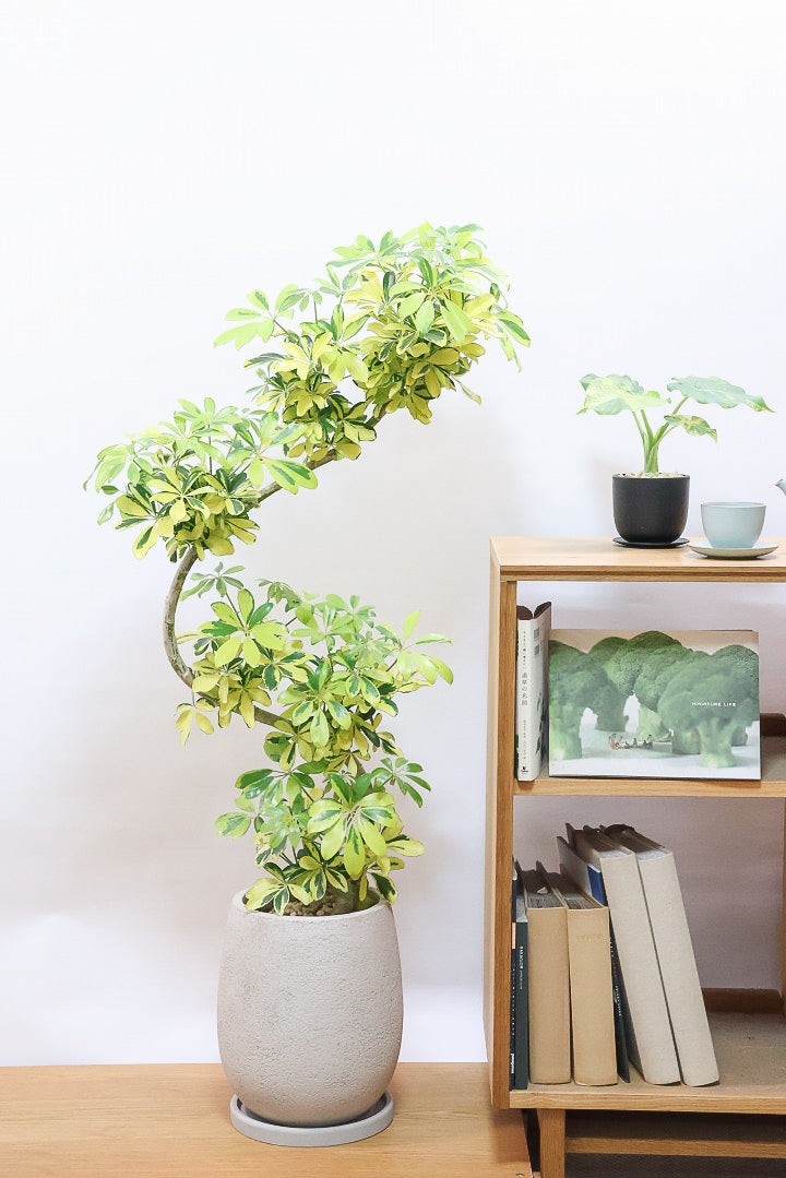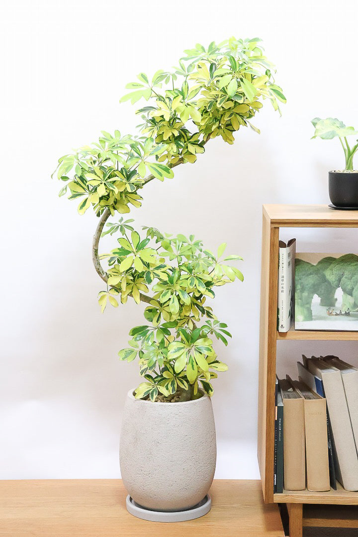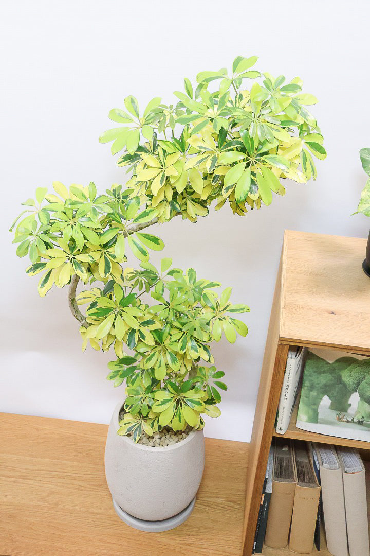 シェフレラとにかく育てやすくて丈夫な観葉植物。性質はとても健常で丈夫。個性的な樹形のものが多く、お部屋のメイングリーンになる観葉植物です。長い時間けて生長し、葉を伸ばしていくので生長が楽しみな植物です。