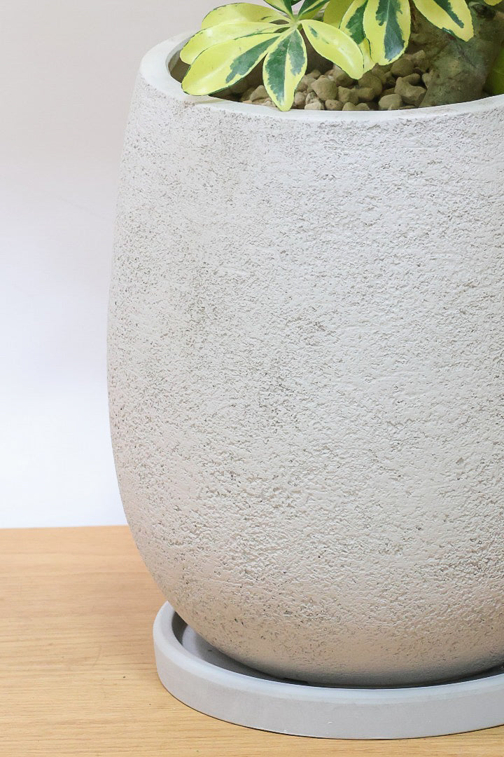 ファイバークレイ製の鉢です。ファイバークレイとはガラス繊維とセメントから作られた耐久性に優れた素材です。