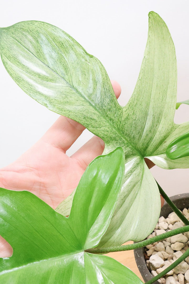 美しい葉が人気のフィロデンドロン。その中でもフロリダゴーストミントは希少ななかなか出回らない品種です。長い時間けて生長し、葉を伸ばしていくので生長が楽しみな植物です。
