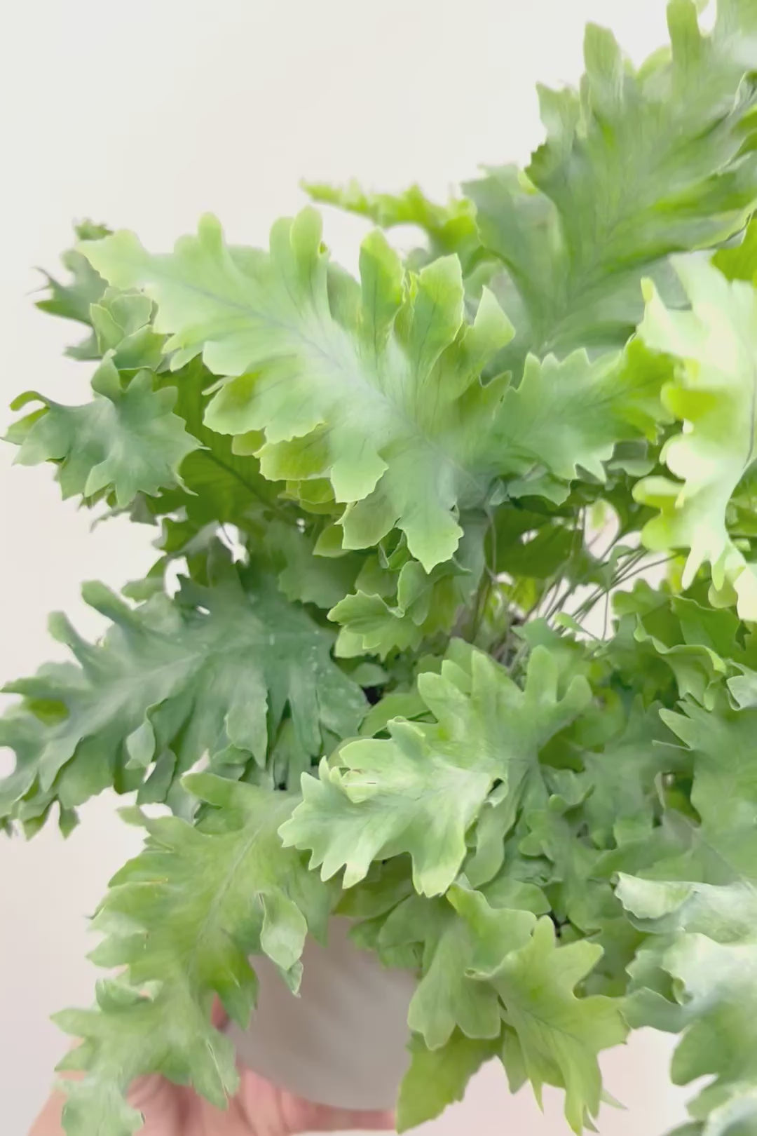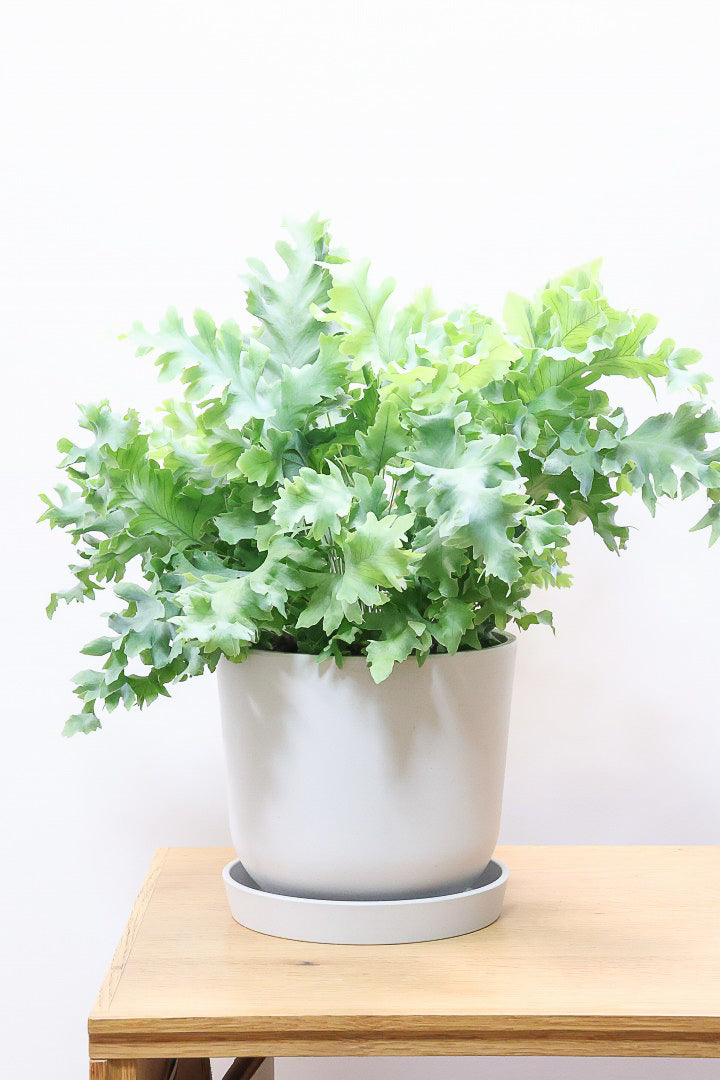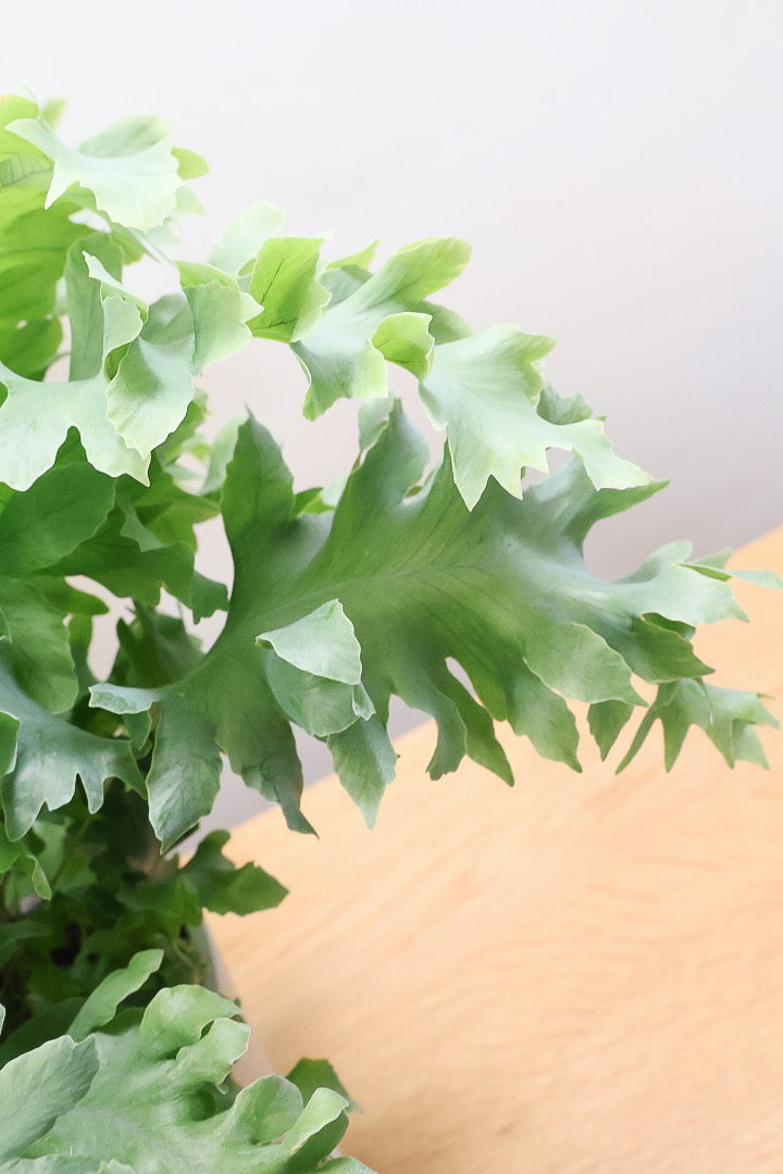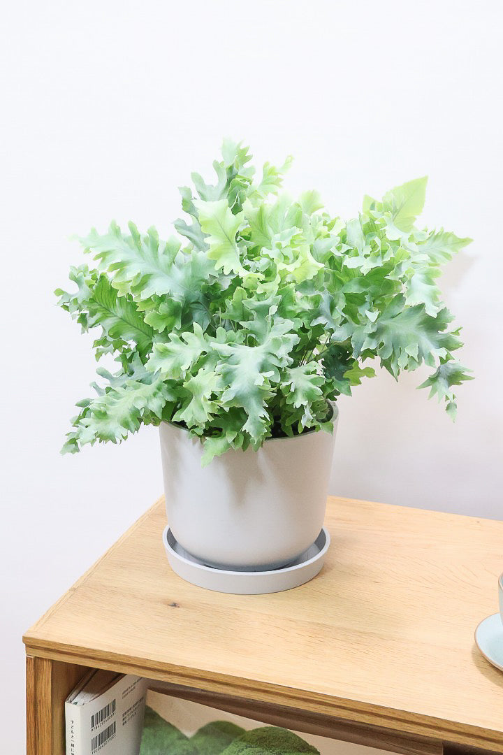 シルバー系のきれいな葉が人気のフレボディウム。性質はとても健常で育てやすい観葉植物です。葉が大きいので存在感があり、お部屋のポイントになる観葉植物です。長い時間けて生長し、葉を伸ばしていくので生長の過程が楽しみな植物です。