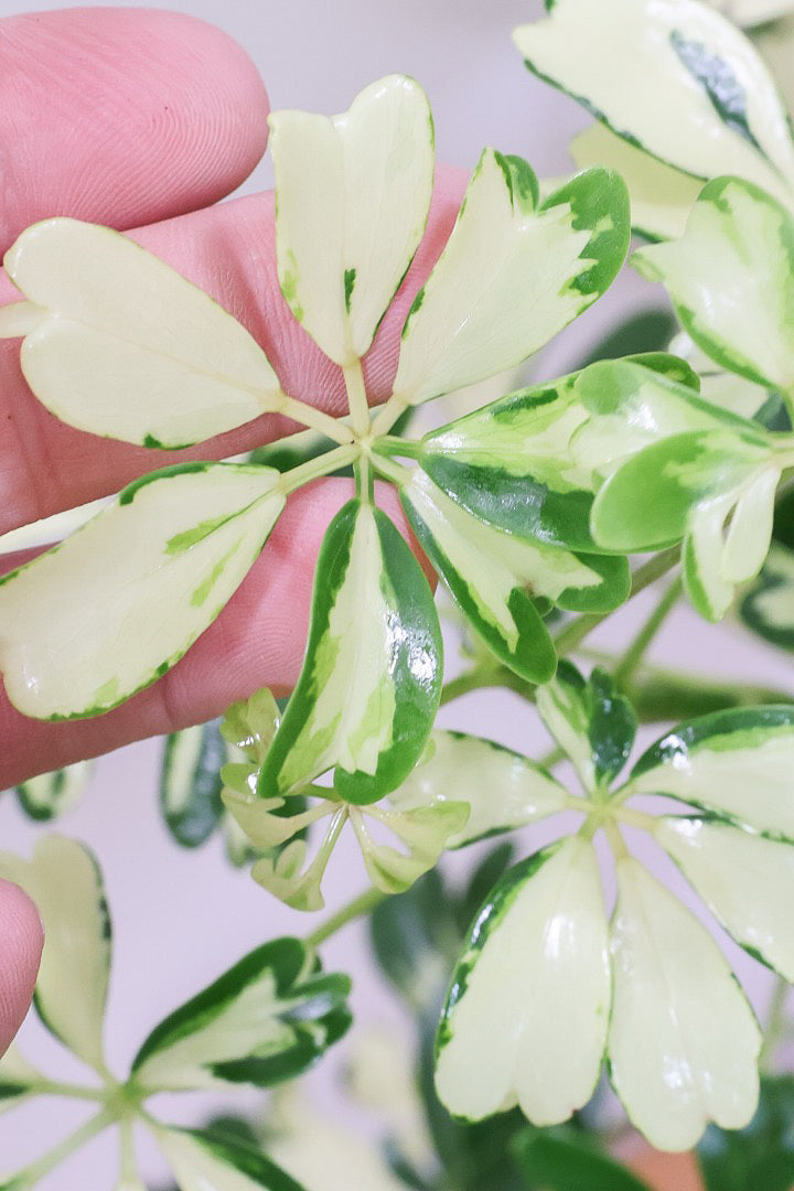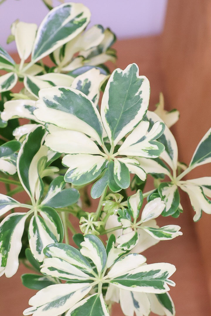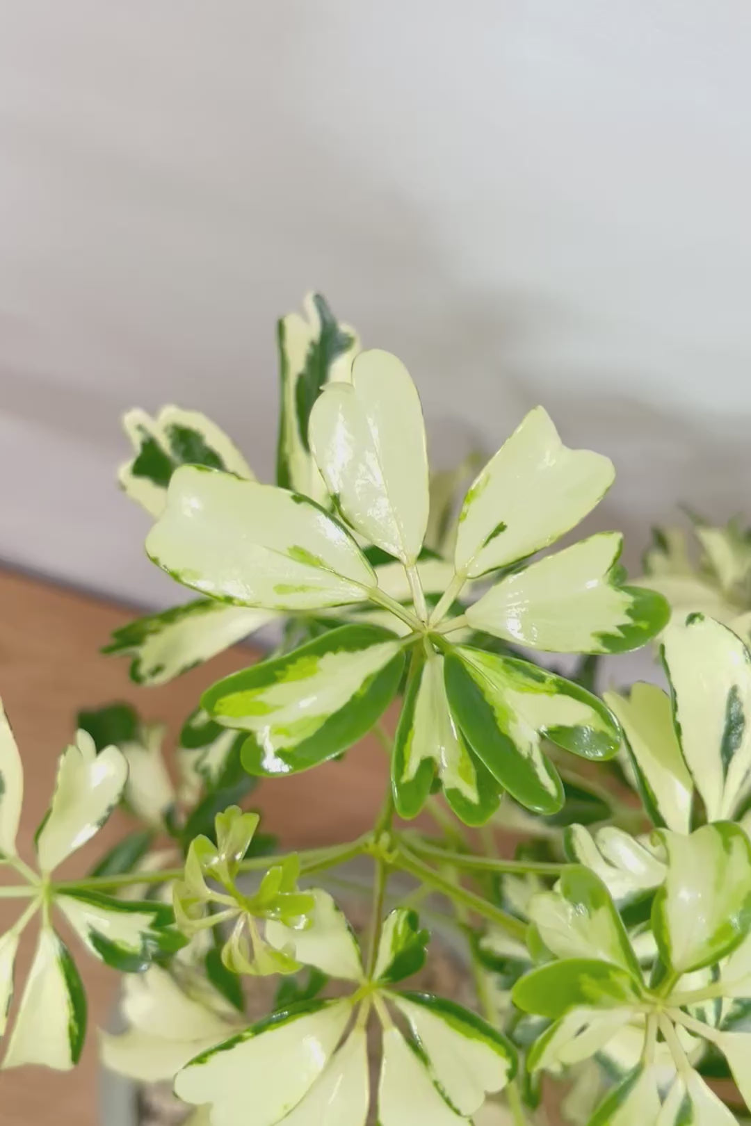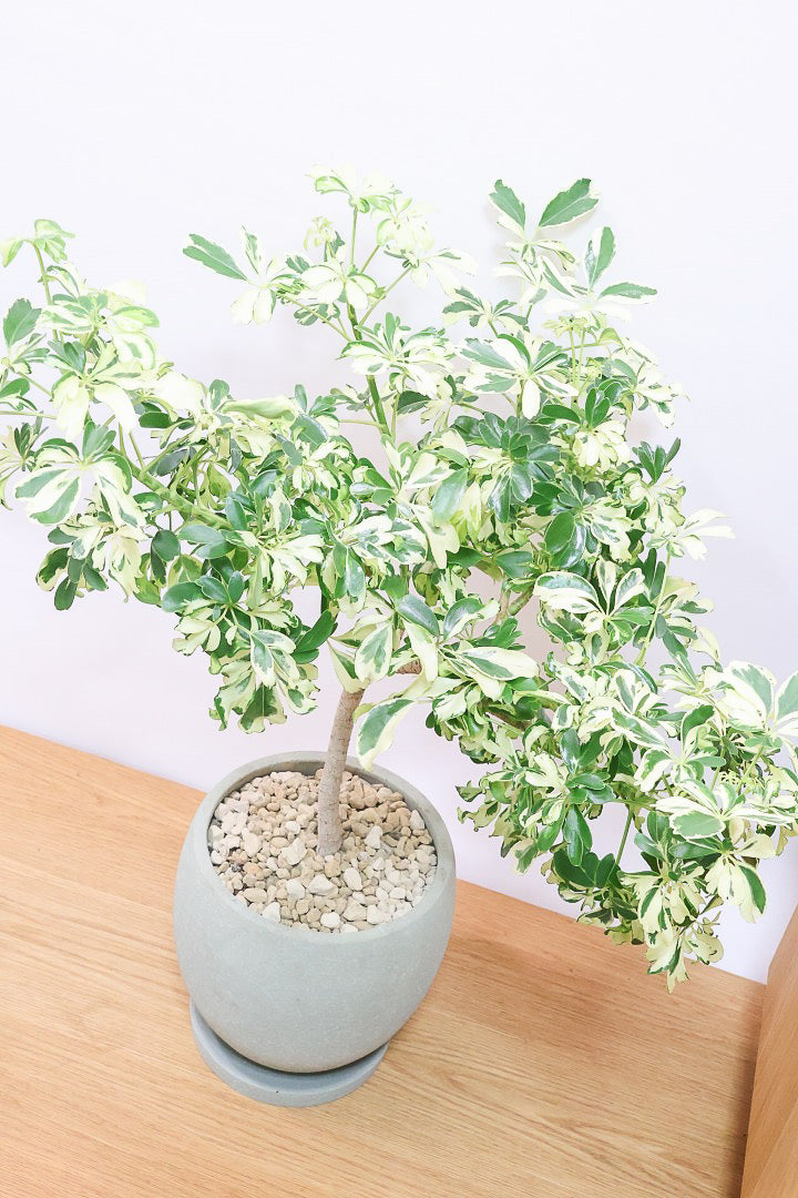 シェフレラはとにかく育てやすくて丈夫な観葉植物。性質はとても健常で丈夫。個性的な樹形のものが多く、お部屋のメイングリーンになる観葉植物です。長い時間けて生長し、葉を伸ばしていくので生長が楽しみな植物です。