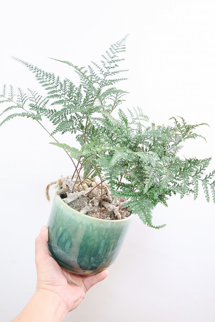 細かい葉のフォルムがかわいいトキワシノブ。性質はとても健常で育てやすい観葉植物です。かわいい葉が特徴で、お部屋のポイントになる観葉植物です。長い時間けて生長し、葉を伸ばしていくので生長が楽しみな植物です。